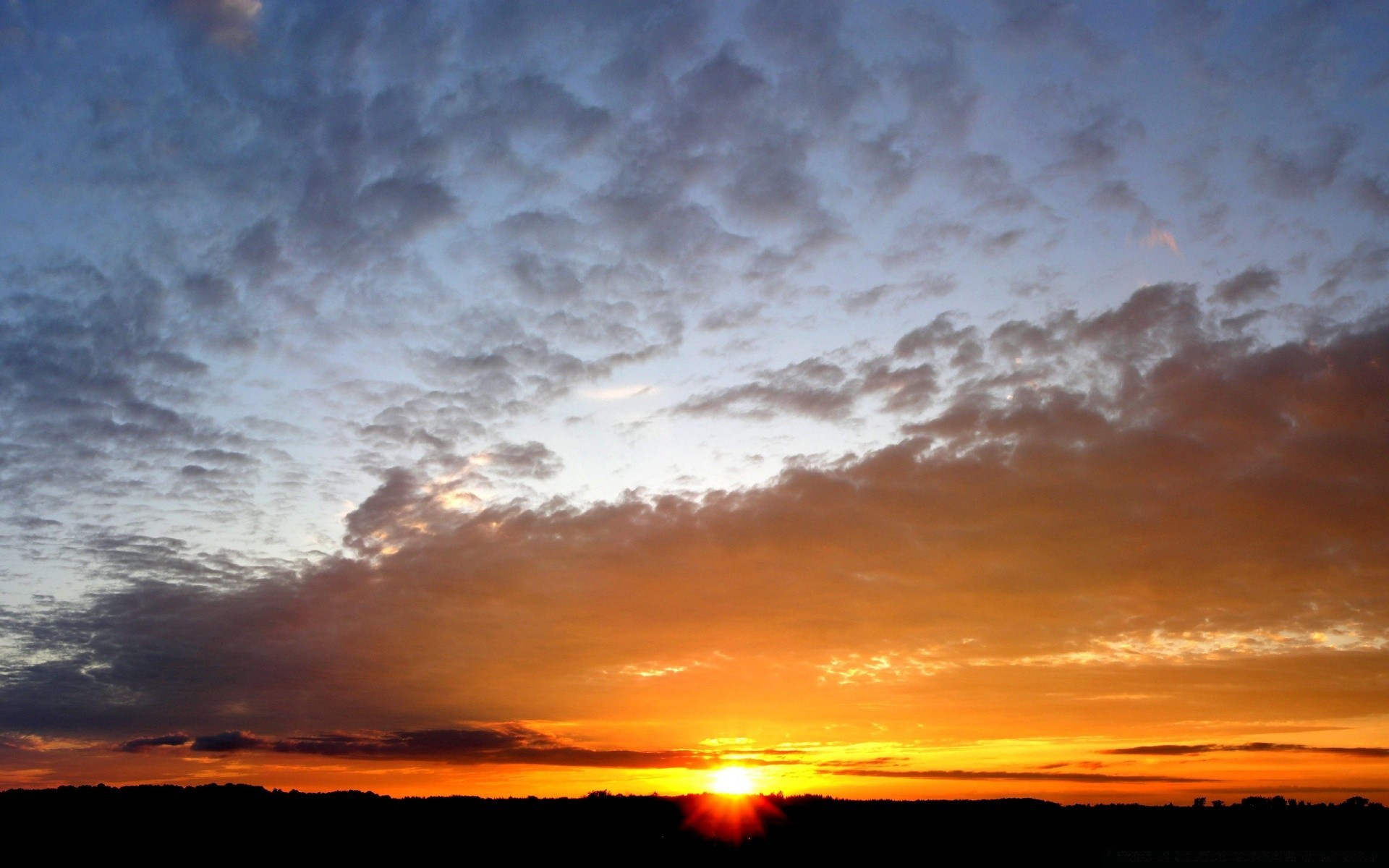 Paisaje con un cielo resplandeciente y montañas al atardecer