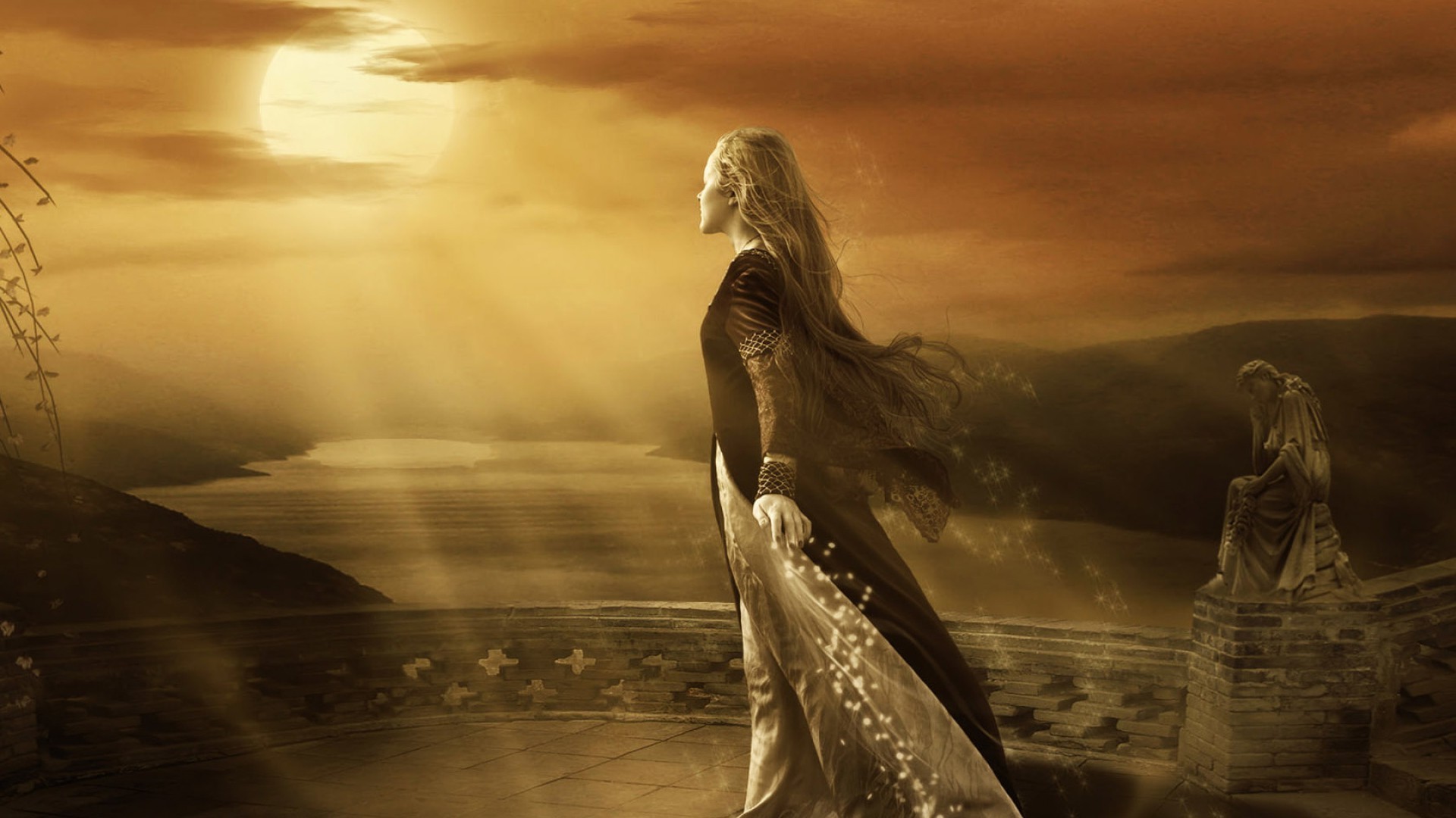 A la luz del atardecer se encuentra como una estatua de una hermosa mujer
