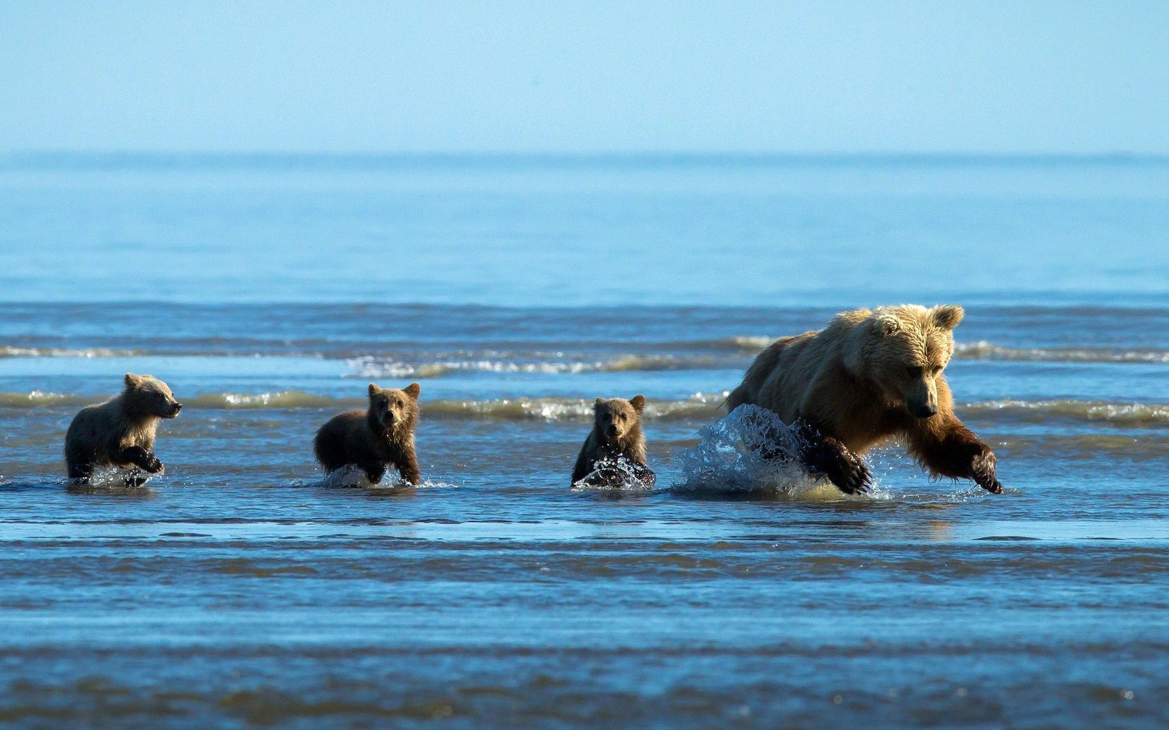 Familia de osos en aguas poco profundas