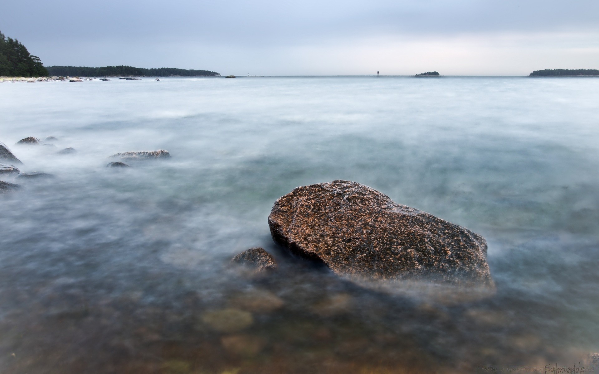 Costa rocosa bajo una bruma brumosa