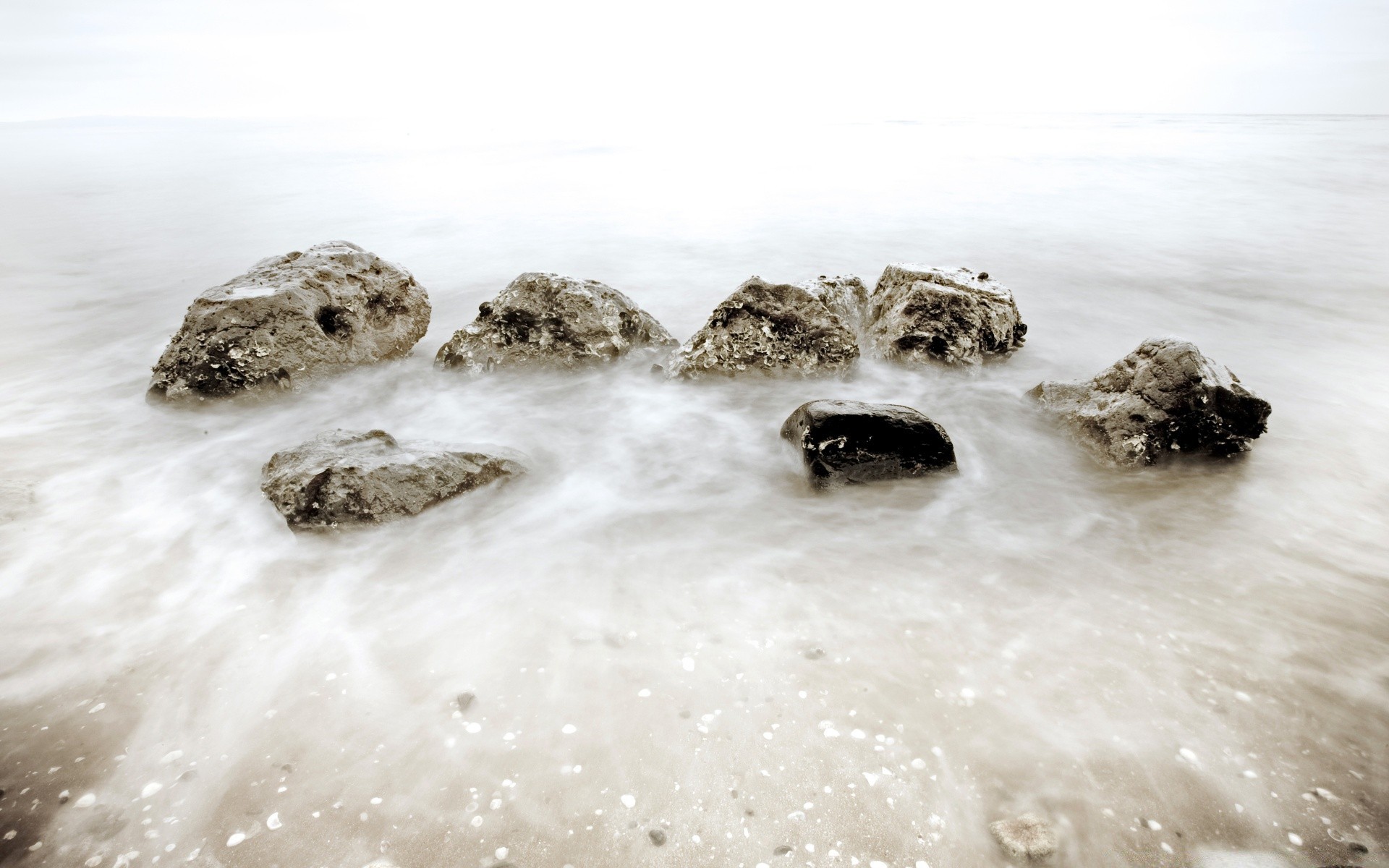Playa de arena desierta bañada por el mar bajo un cielo nublado