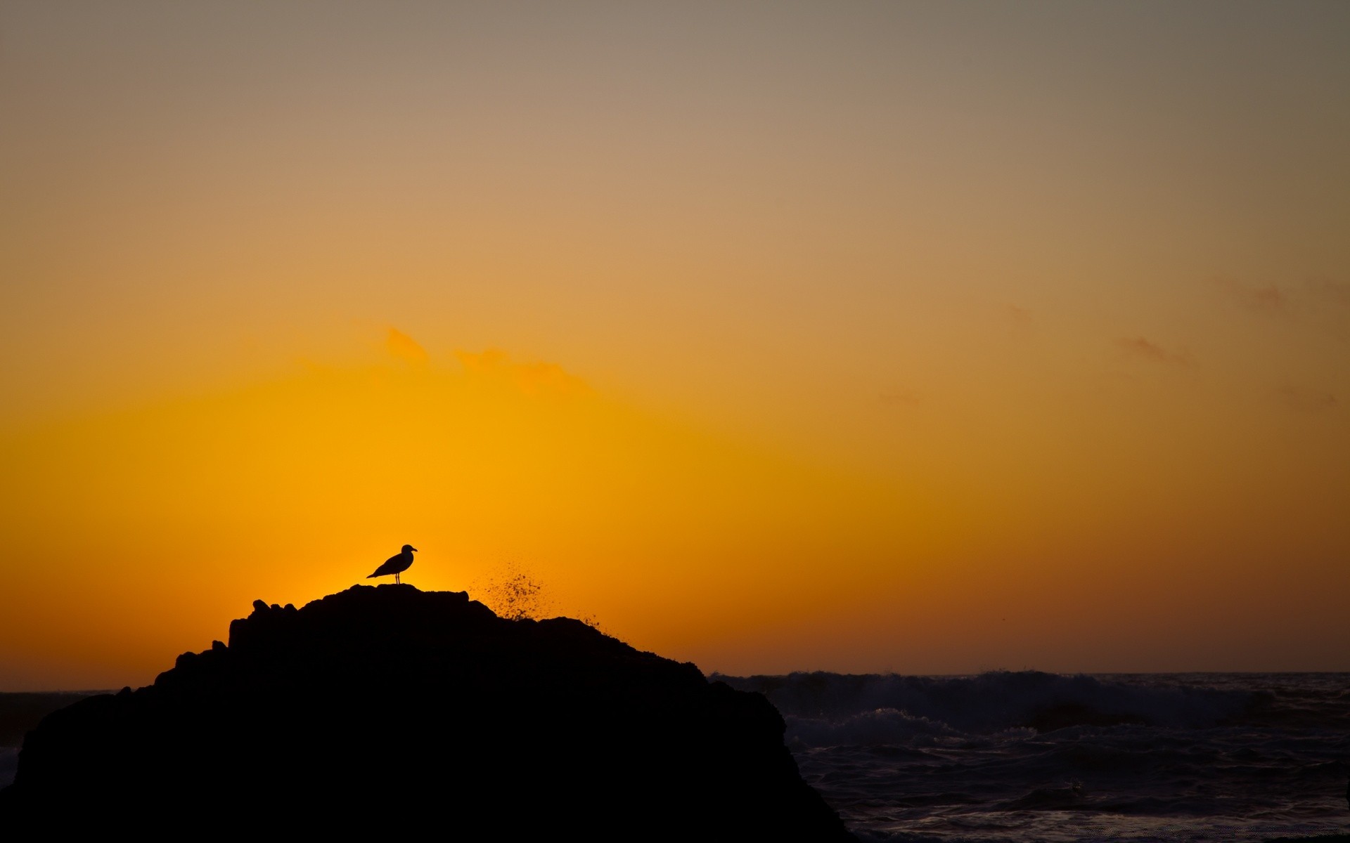 Un pájaro en una isla. Amanecer en el mar
