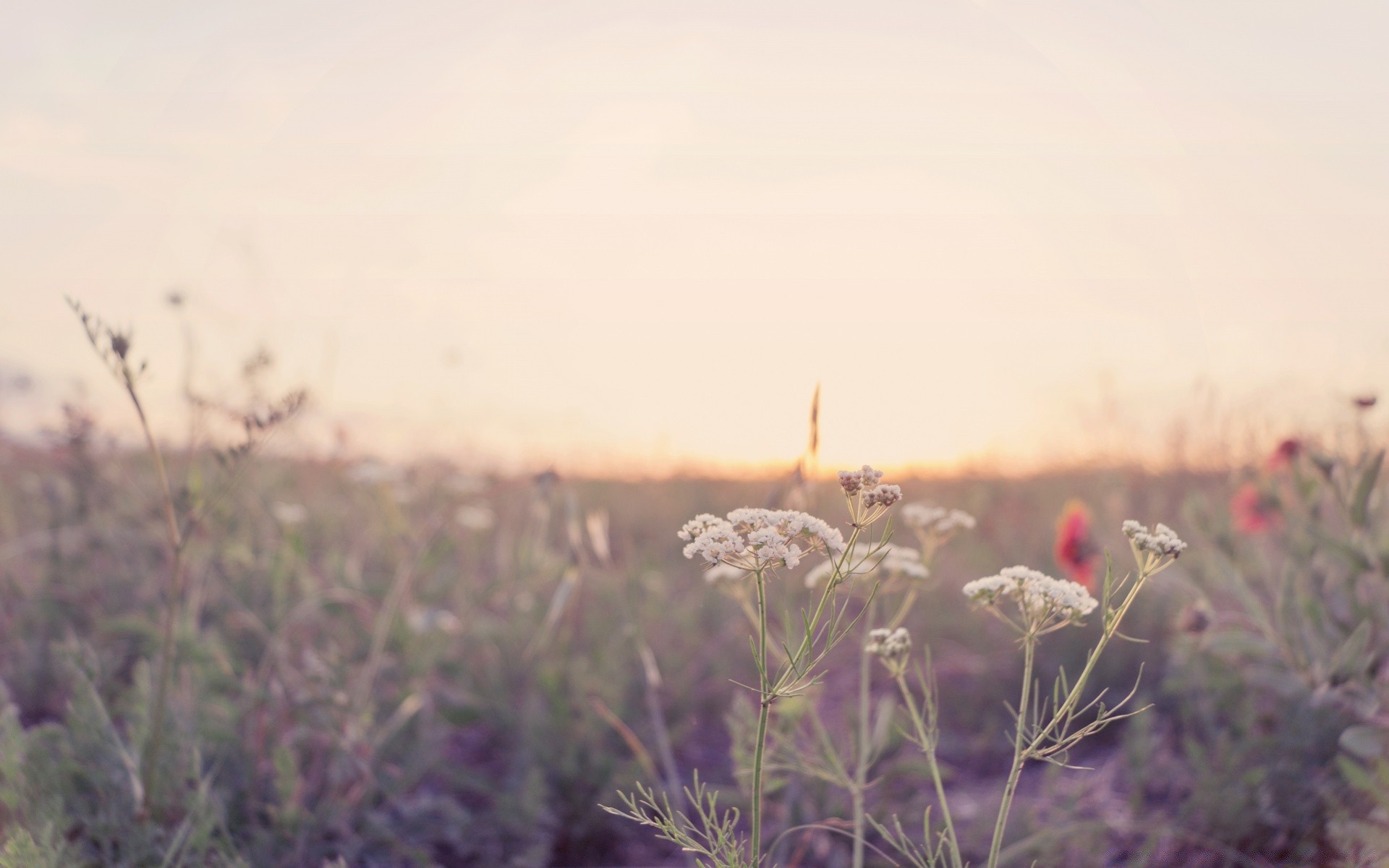 Diferentes flores silvestres al amanecer