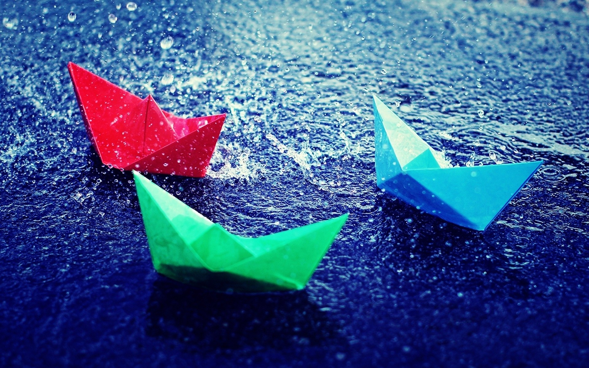 Barcos de origami de colores en el agua