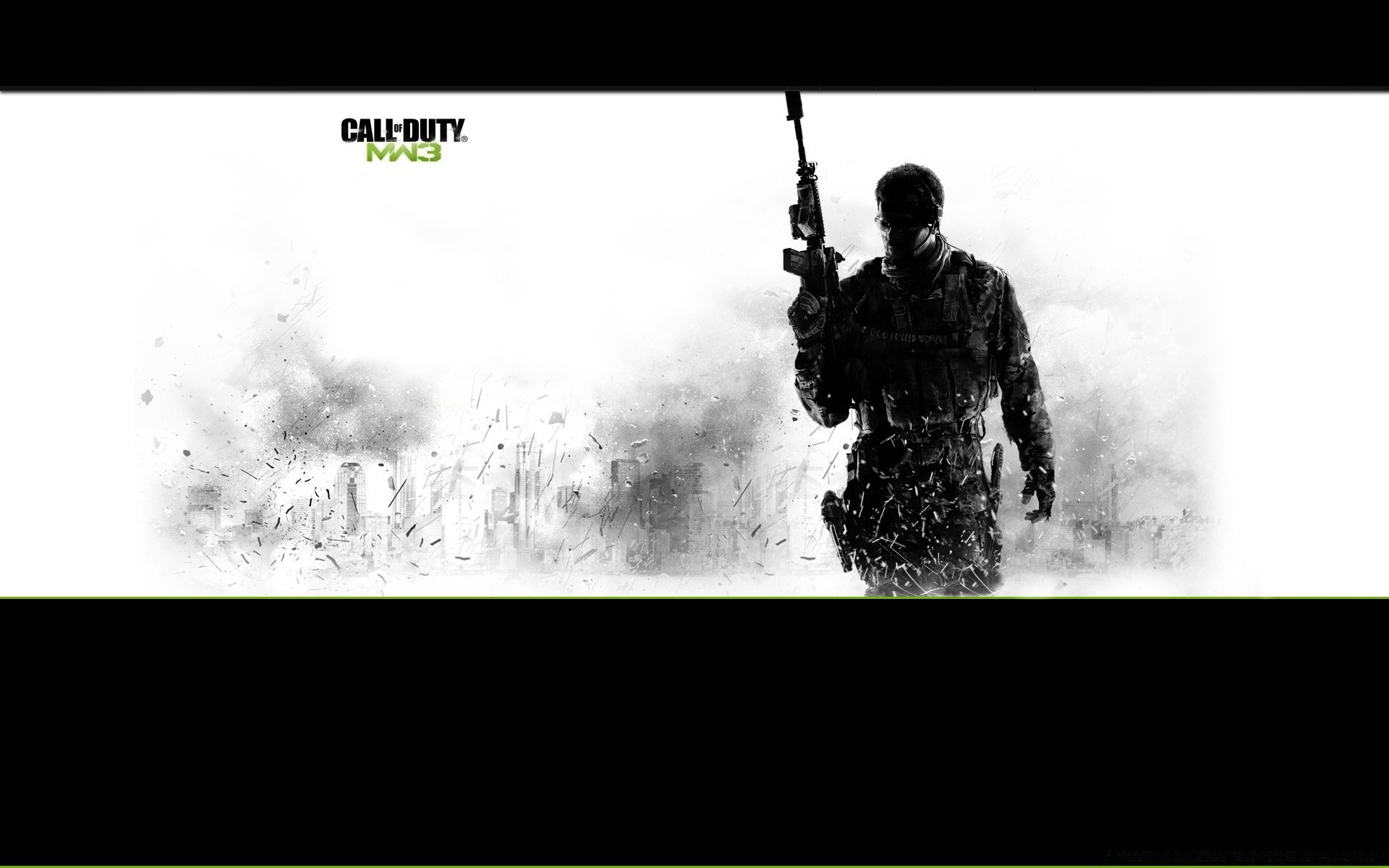 Inscripción verde mw3 sobre fondo oscuro