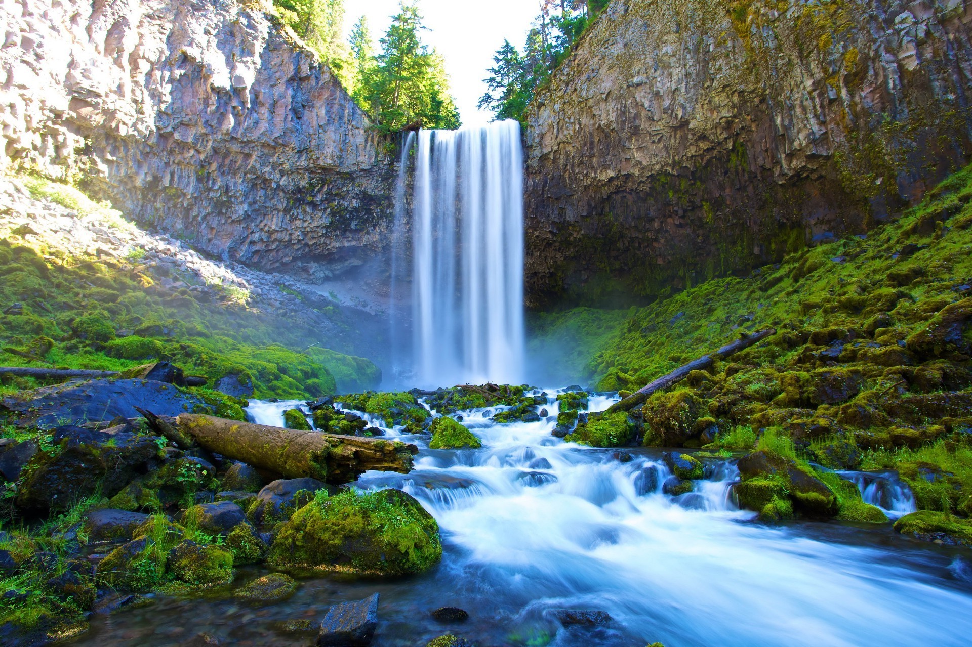 Una poderosa cascada a través de la montaña