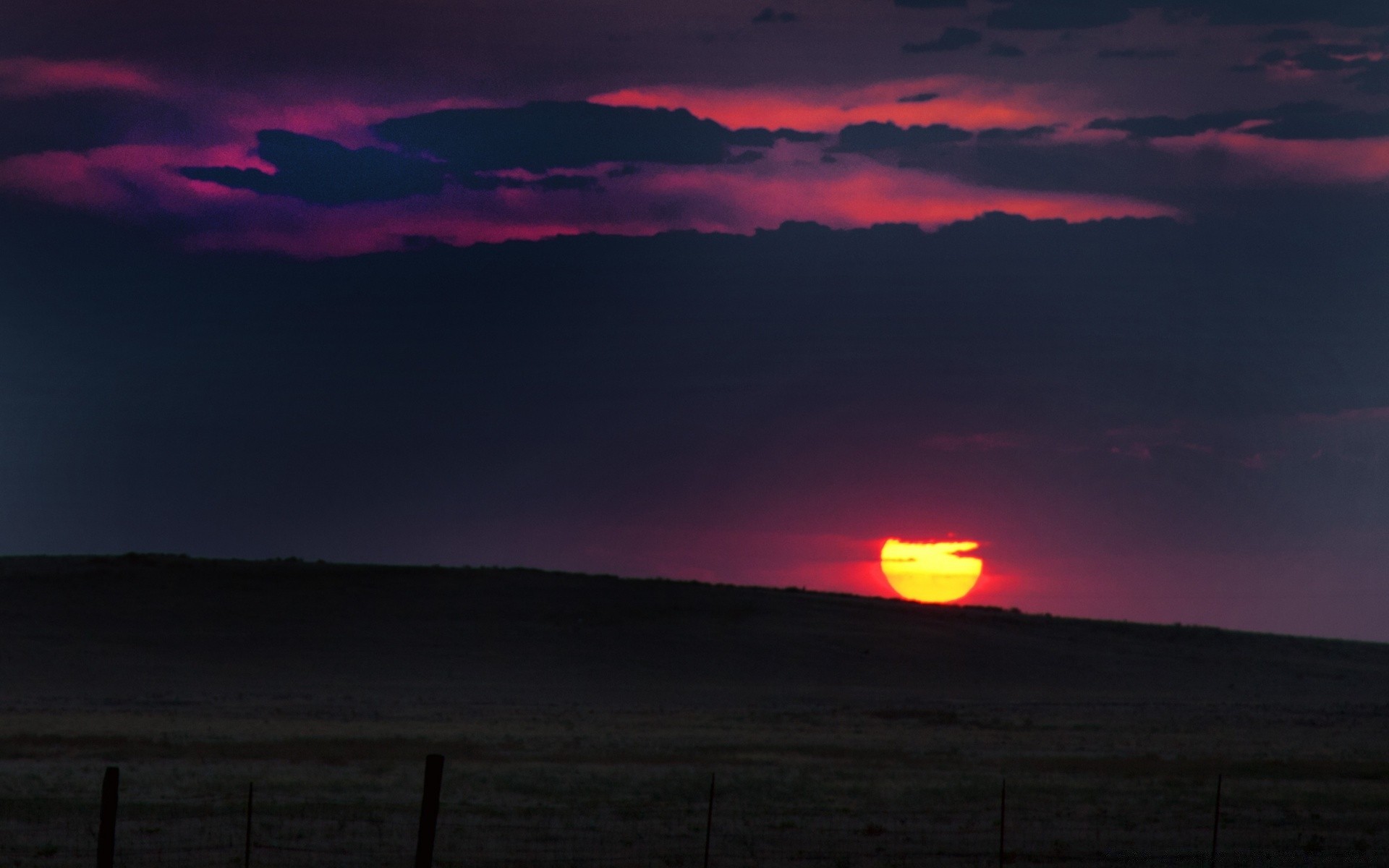Cielo al atardecer con nubes a través de las cuales los rayos del sol penetran