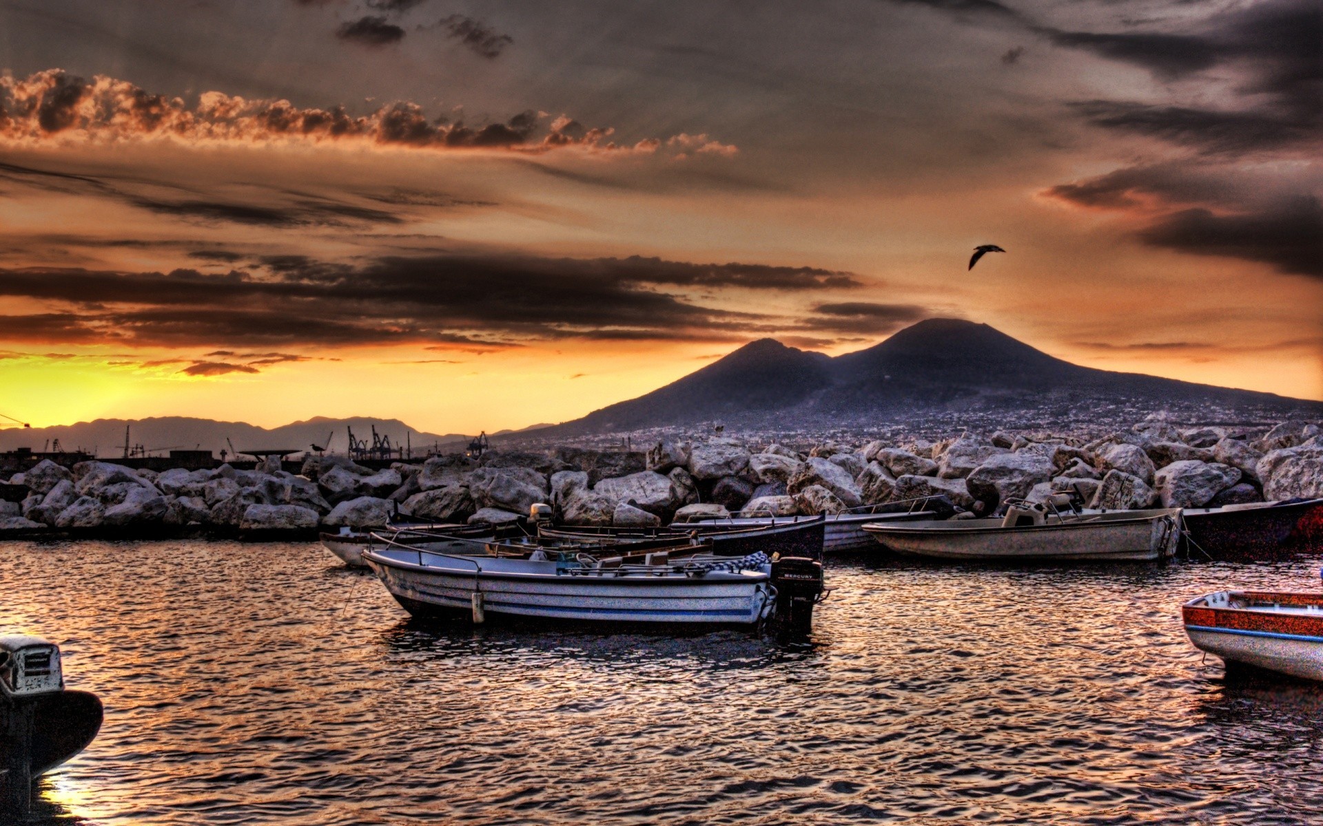 Barco en el mar por la noche
