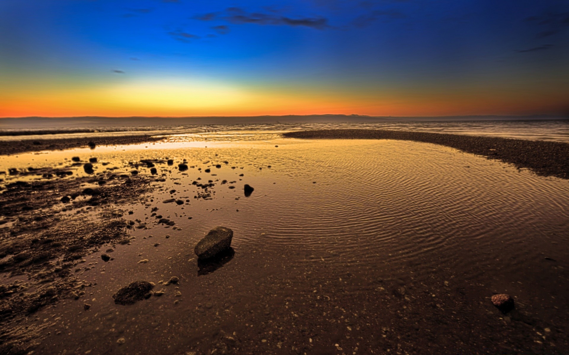 La arena de la playa se fusiona con el oranjevvy gorezontamLa arena de la playa se fusiona con el oranjevvy gorezontam