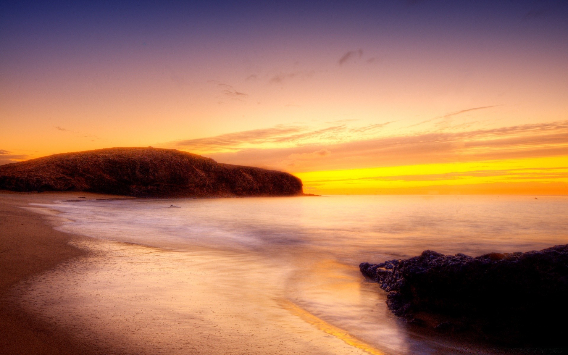 Playa de arena al atardecer