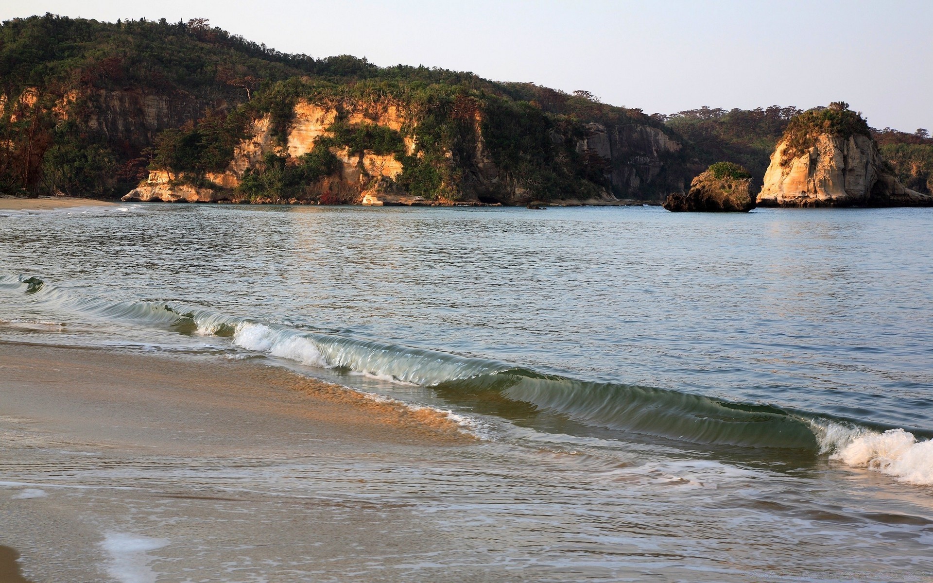 Playa del amanecer en el mar o el océano con arenaPlaya del amanecer en el mar o el océano con arena