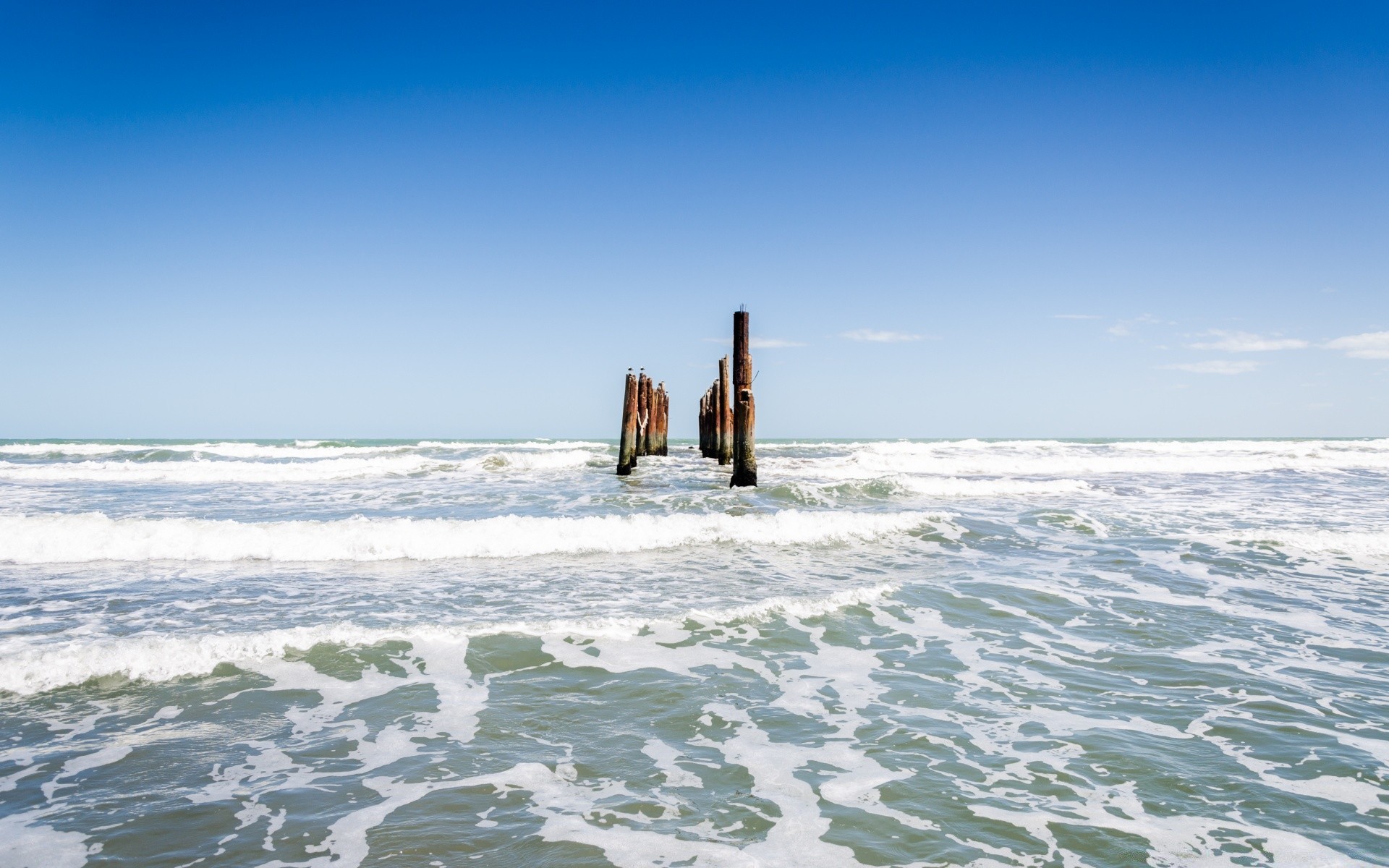 Agua de mar tranquila en la costa rocosa bajo el cielo azul