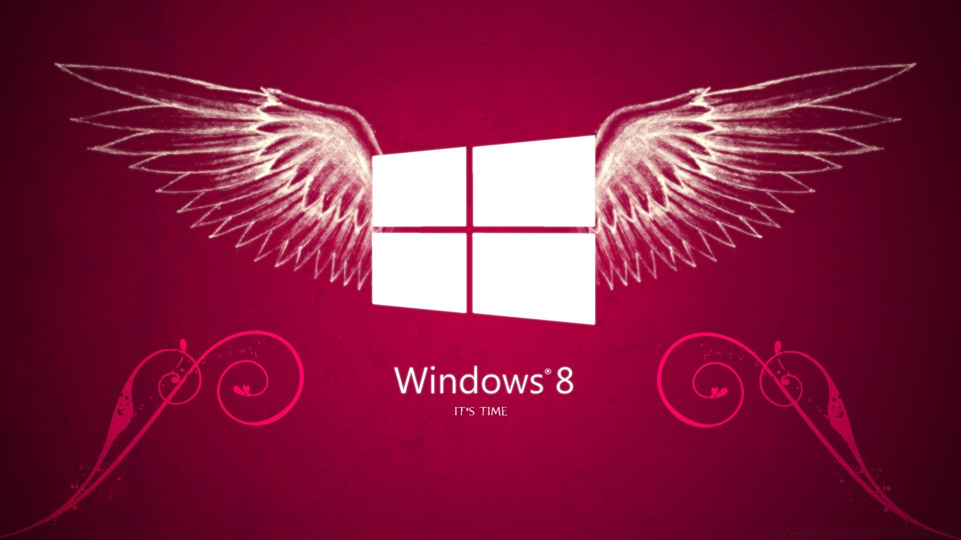 Logotipo de Windows con alas sobre fondo Burdeos