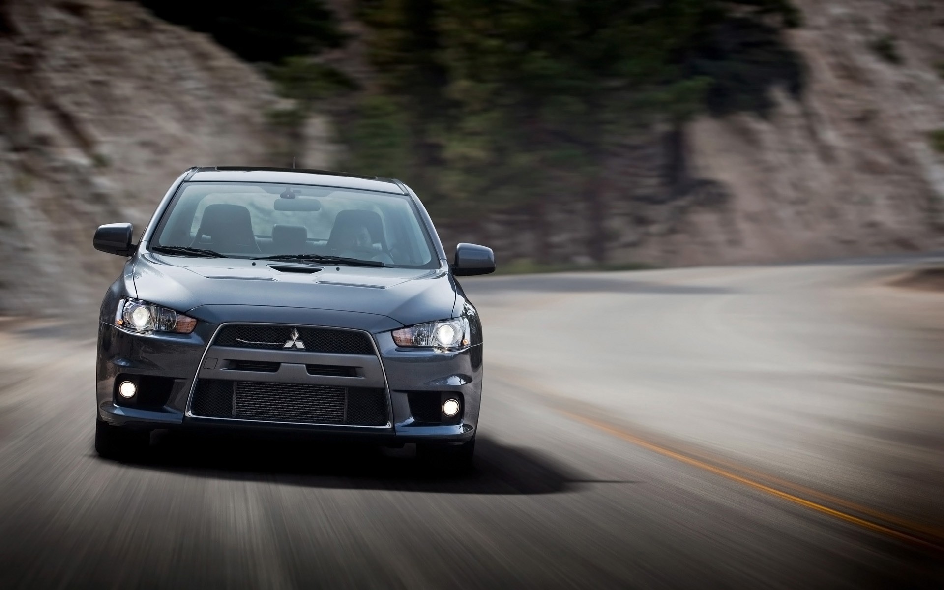 Vehículo mitsubishi corriendo por carretera asfaltada