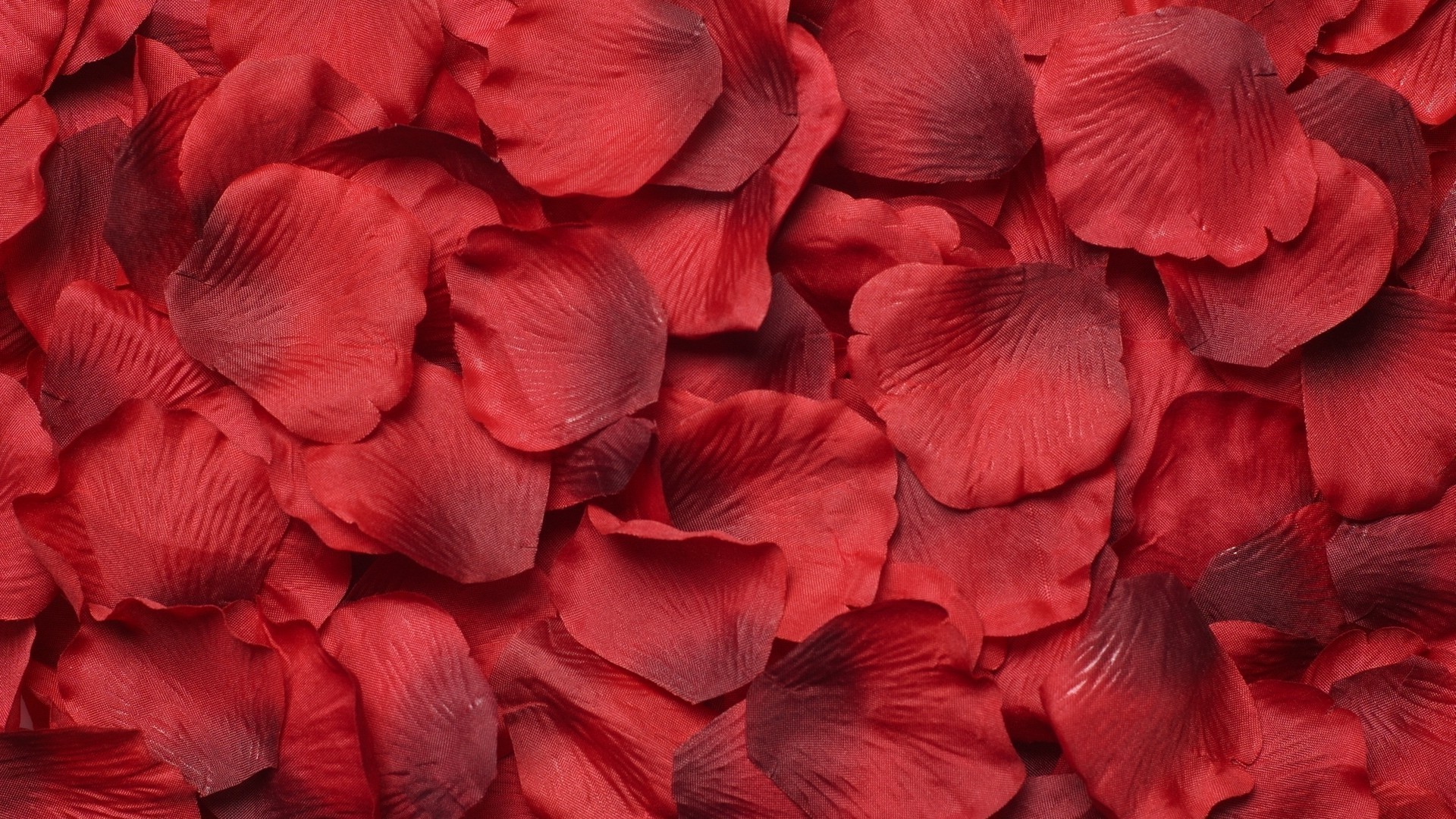 Pétalos de rosa escarlata esparcidos por el Suelo