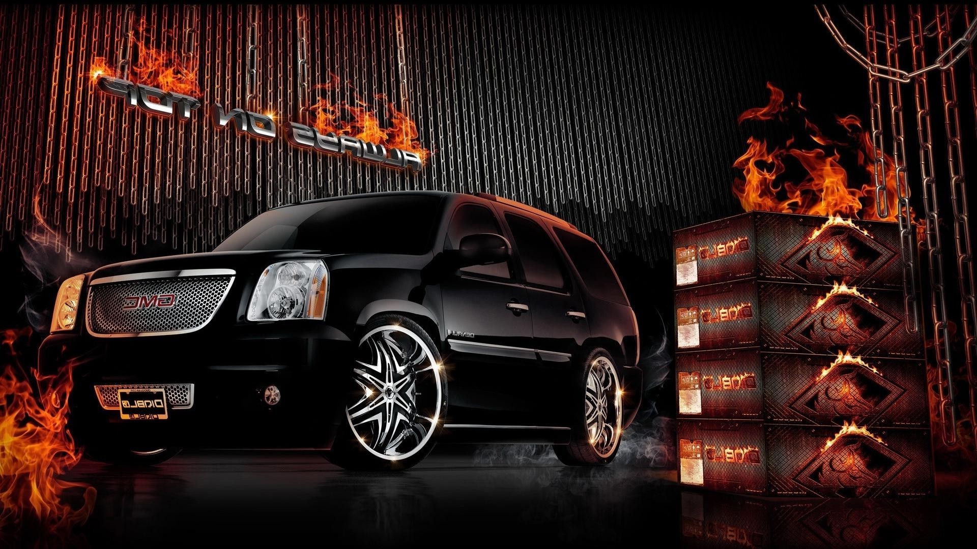 Hermoso nuevo SUV rodeado de fuego