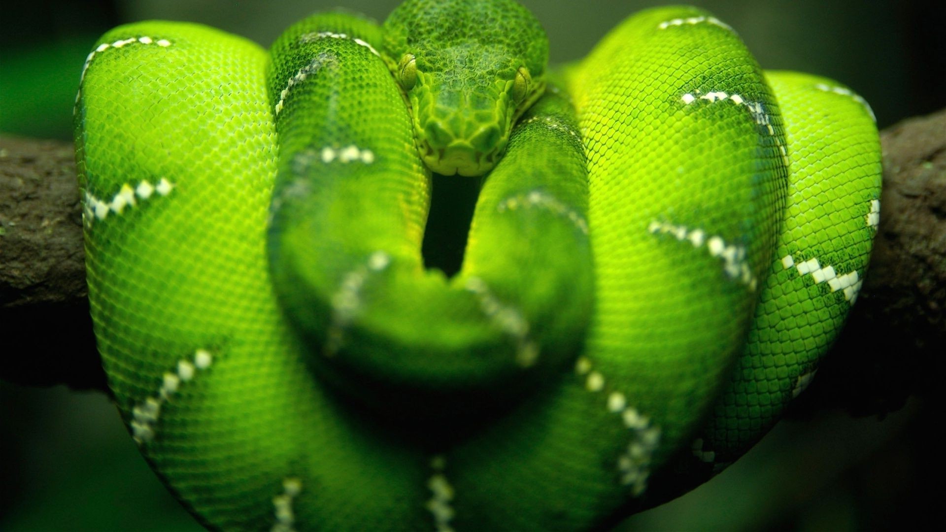 Pitón grande verde en un árbol