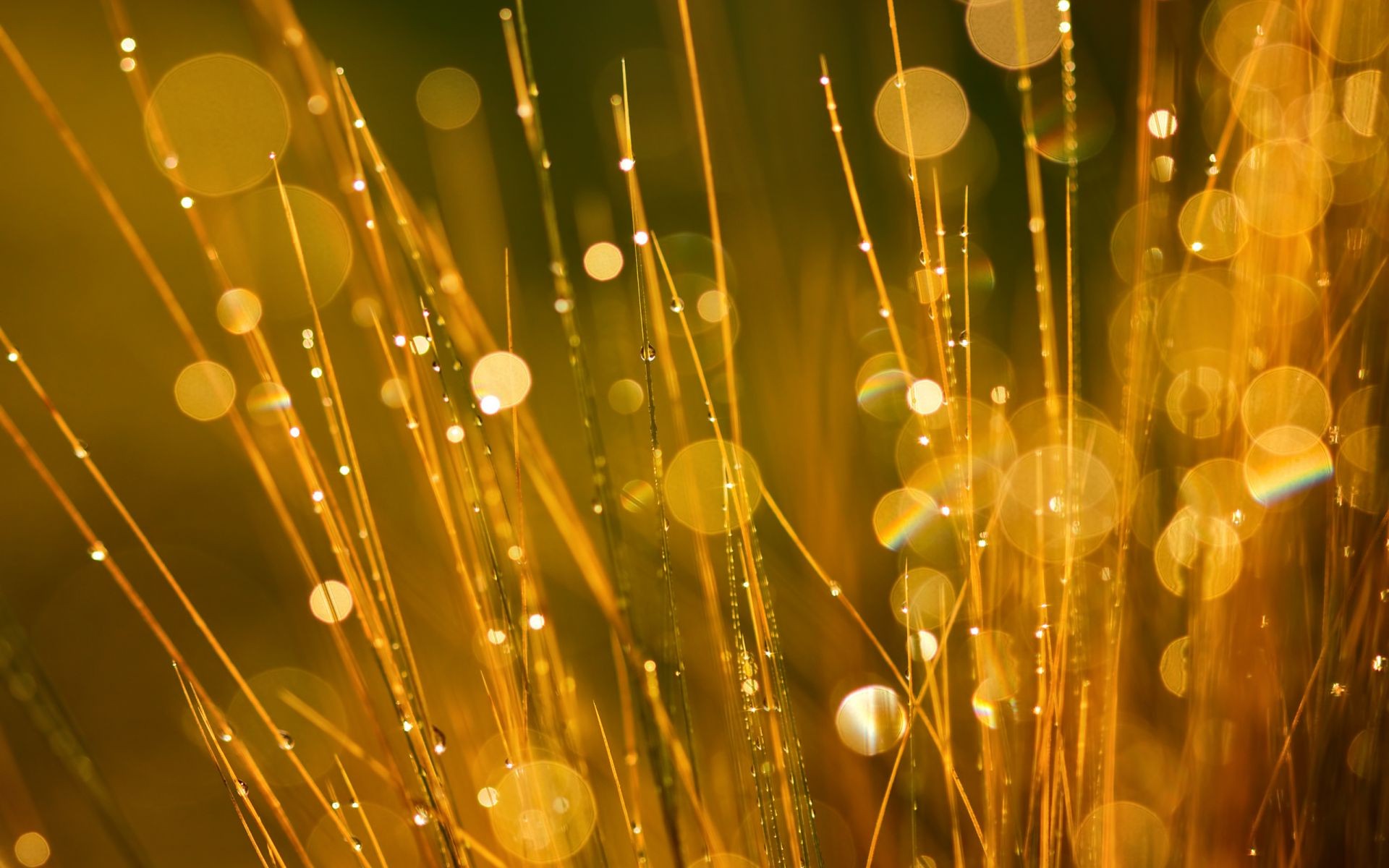 Gotas de rocío en la hierba a la luz brillante