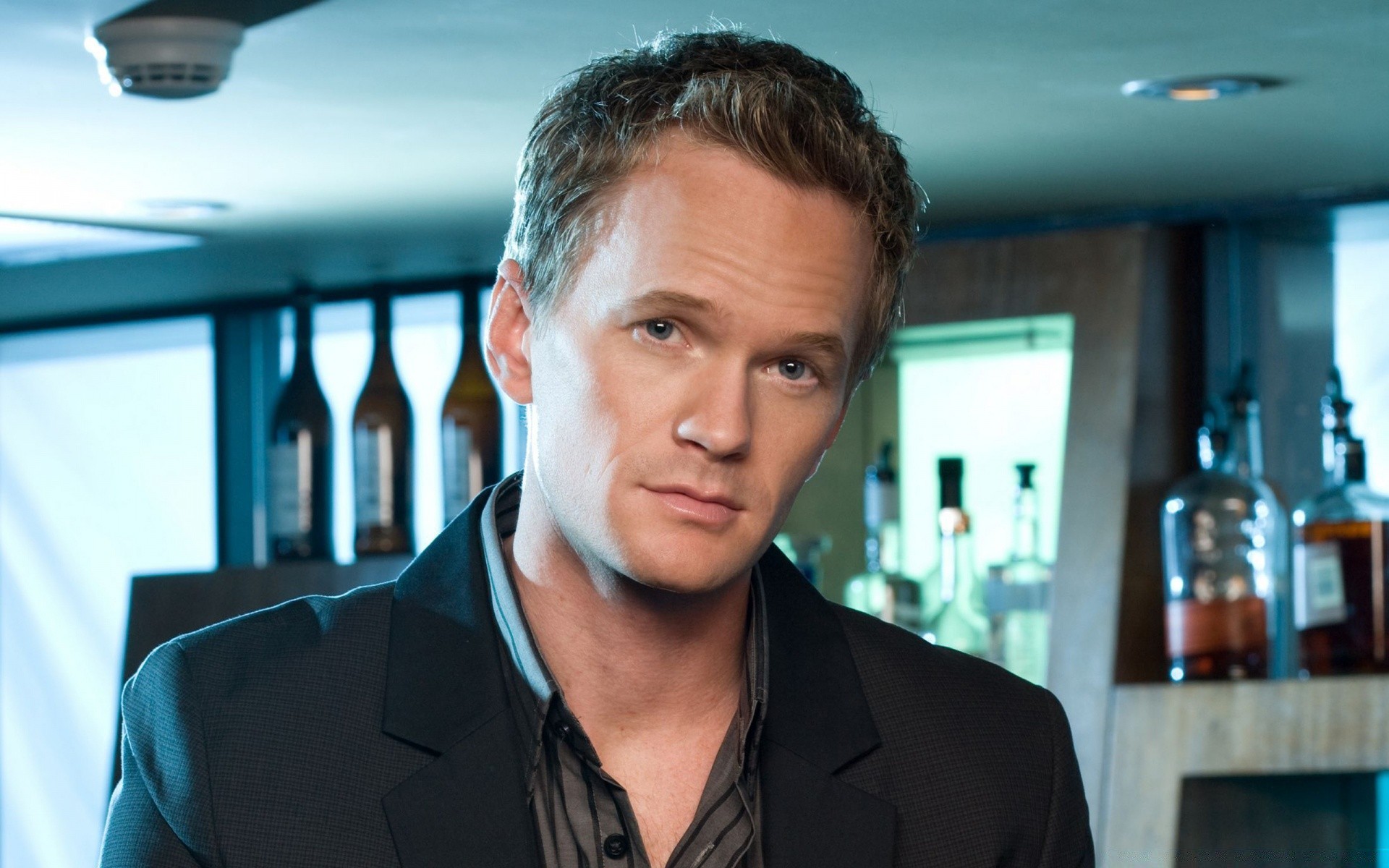 Actriz con un hombre, un vaso y una botella