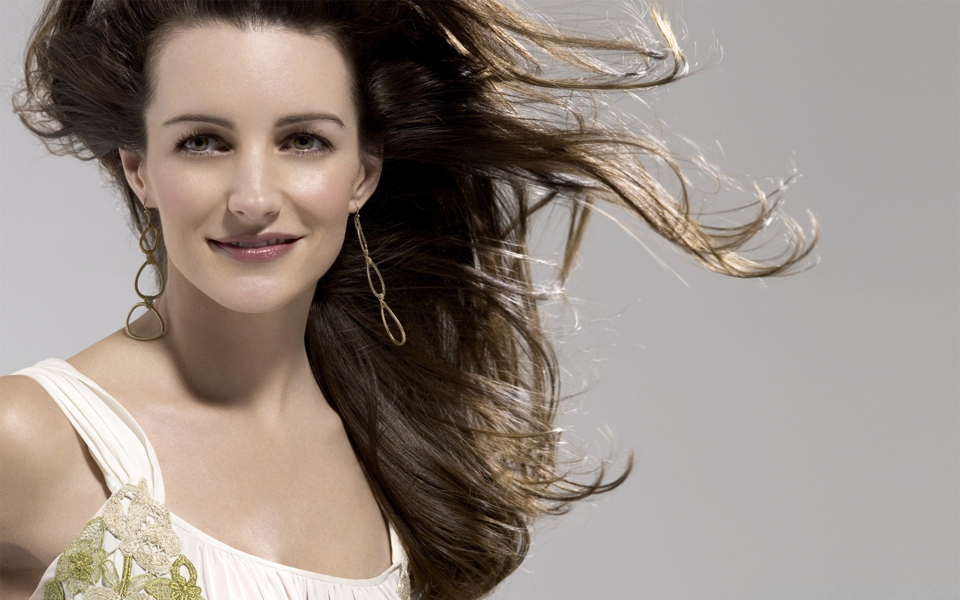 La actriz tiene la piel oscura como si estuviera bronceada, bien arreglada