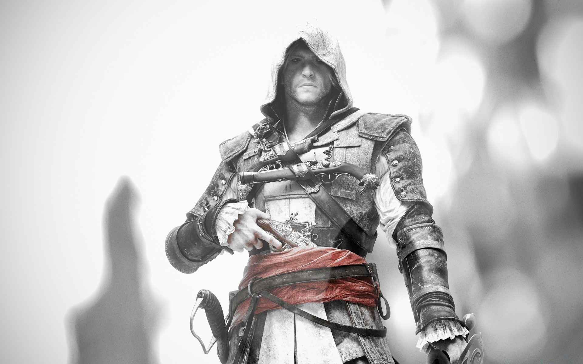 Hombre adulto con casco y armas blancas