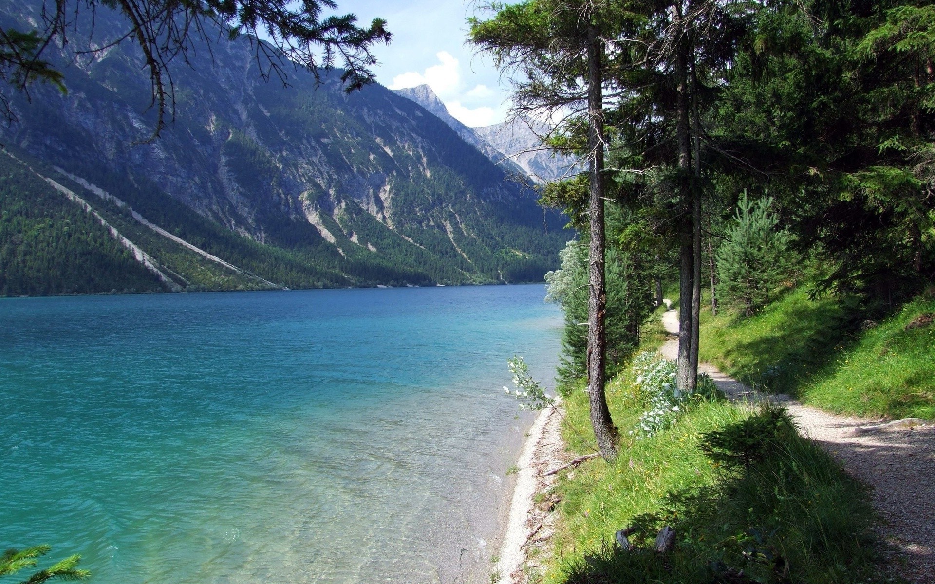 Tumbonas bajo las palmeras junto a la piscina de agua azul