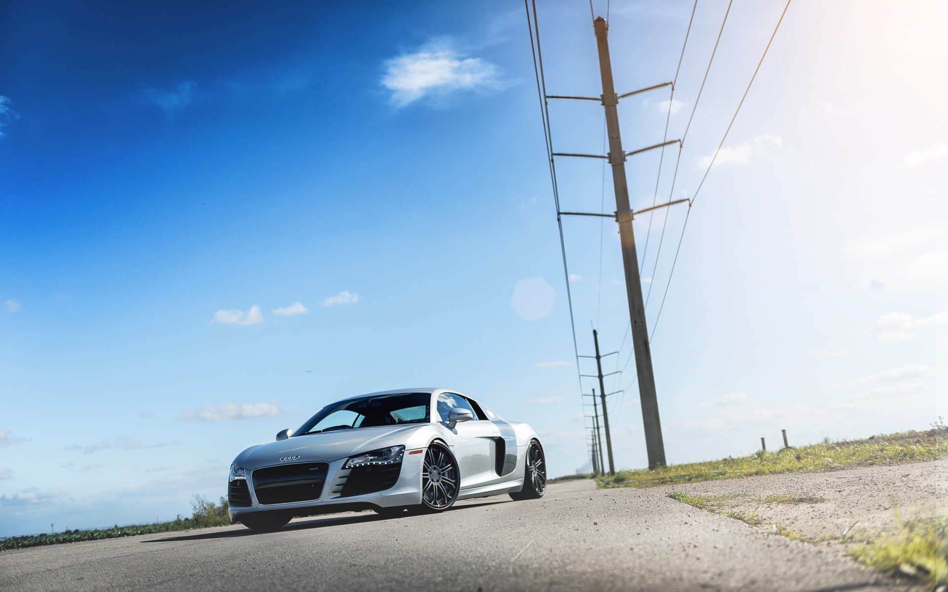 Cielo azul y camino coche al aire libre