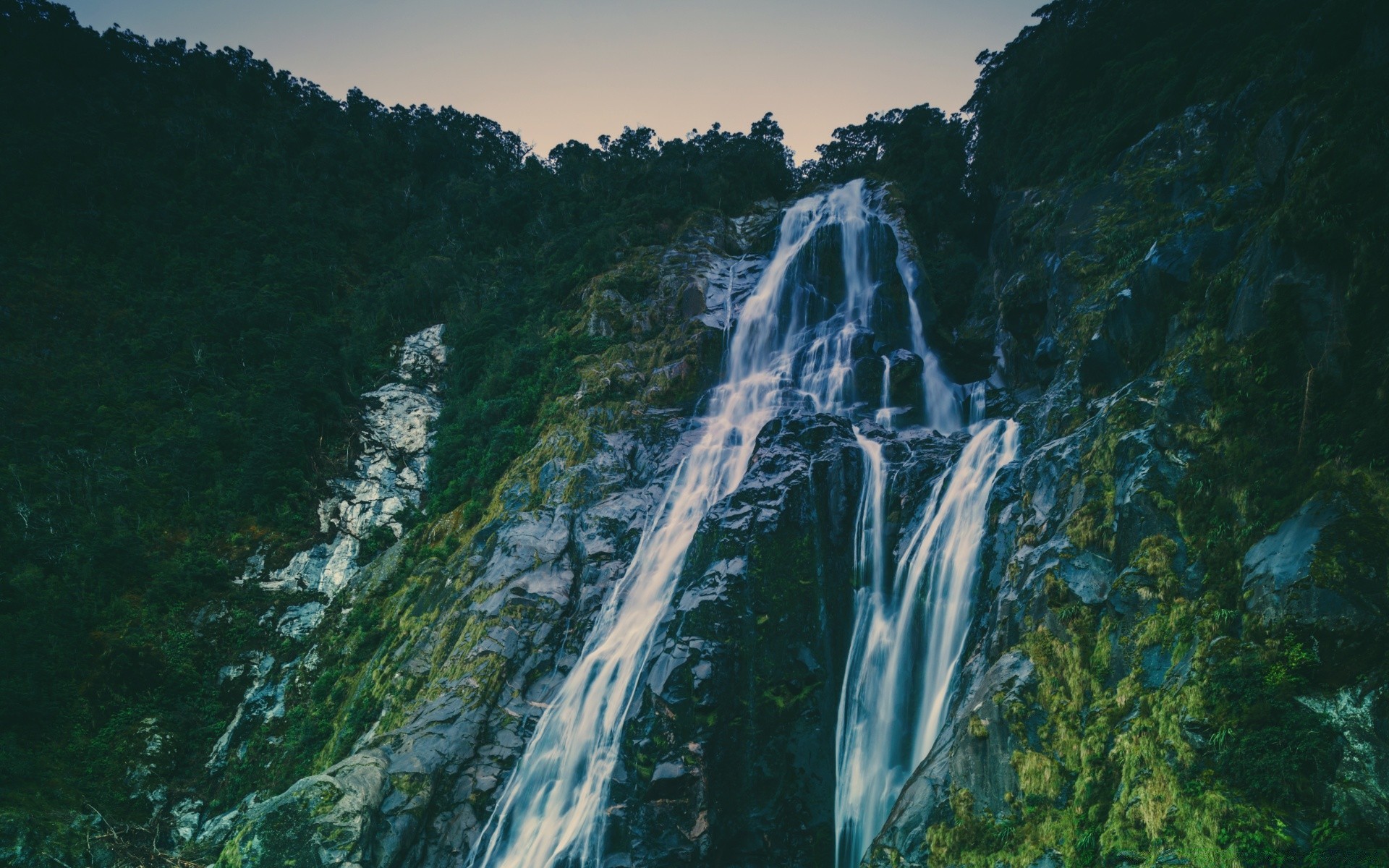 Gran cascada hermosa al atardecer