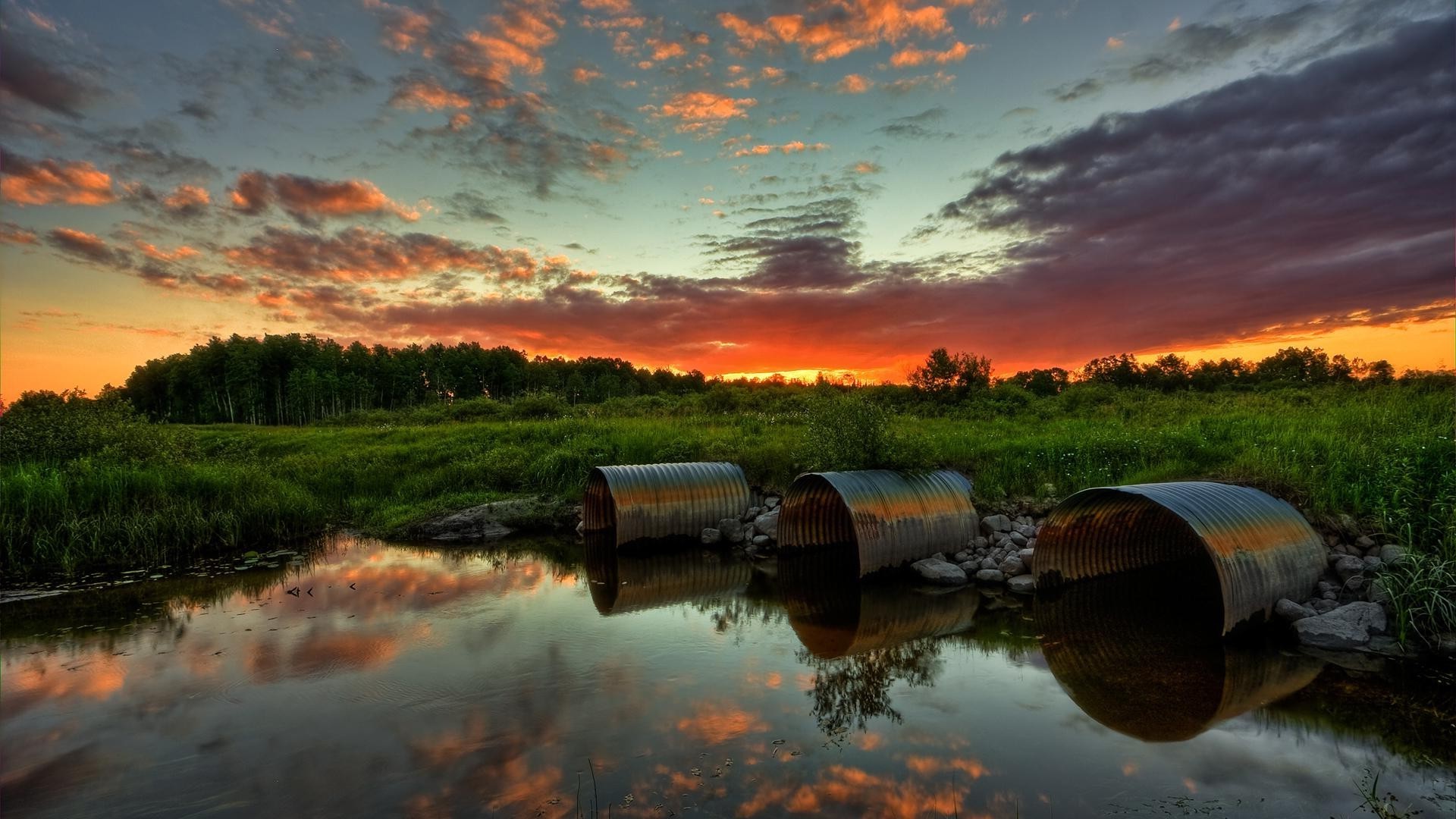 Linterna y siluetas de árboles contra el cielo al atardecer