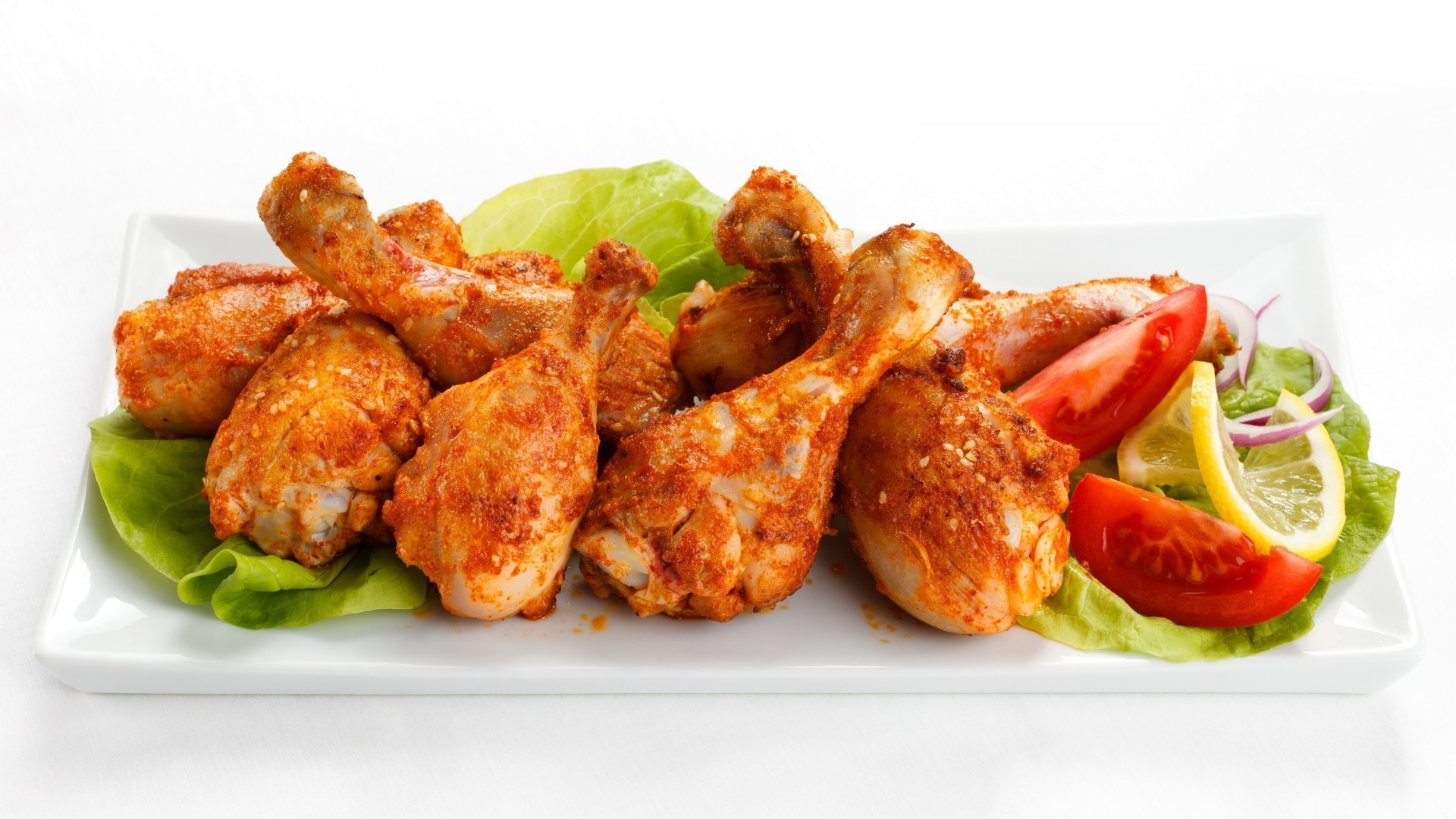 Deliciosas alas en las hojas de lechuga. Servir alitas de pollo