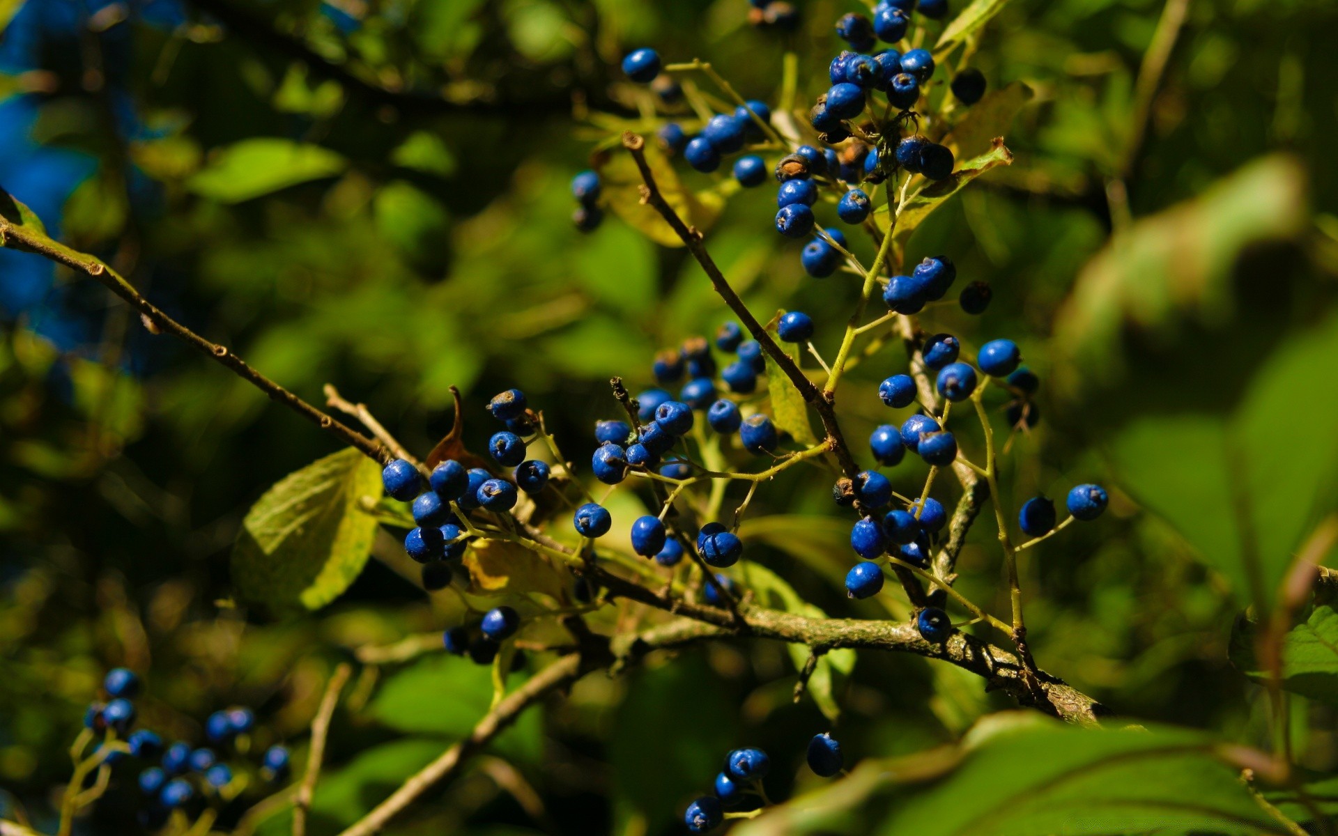Las bayas azules cuelgan de una rama