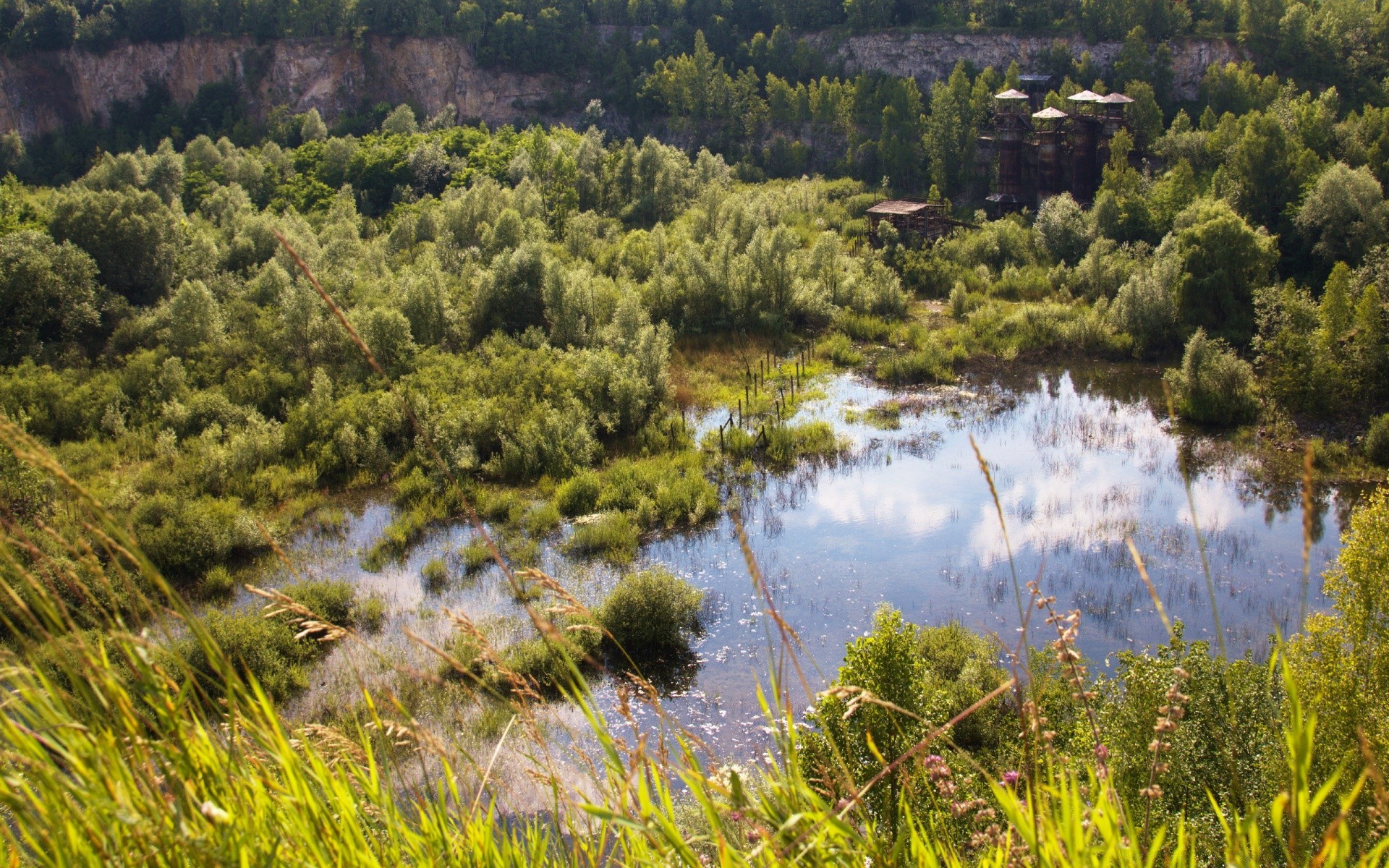 Paisaje tranquilo con vistas al estanque con sotobosque