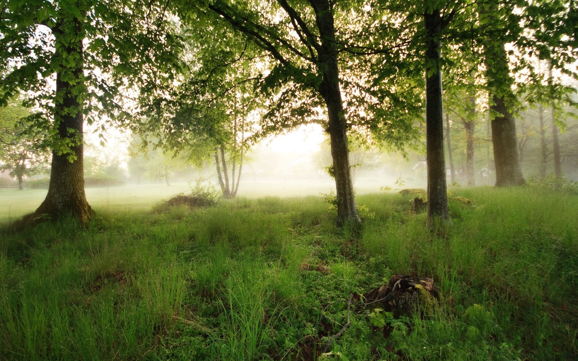 Madrugada. Los rayos del sol se abren paso a través del matorral