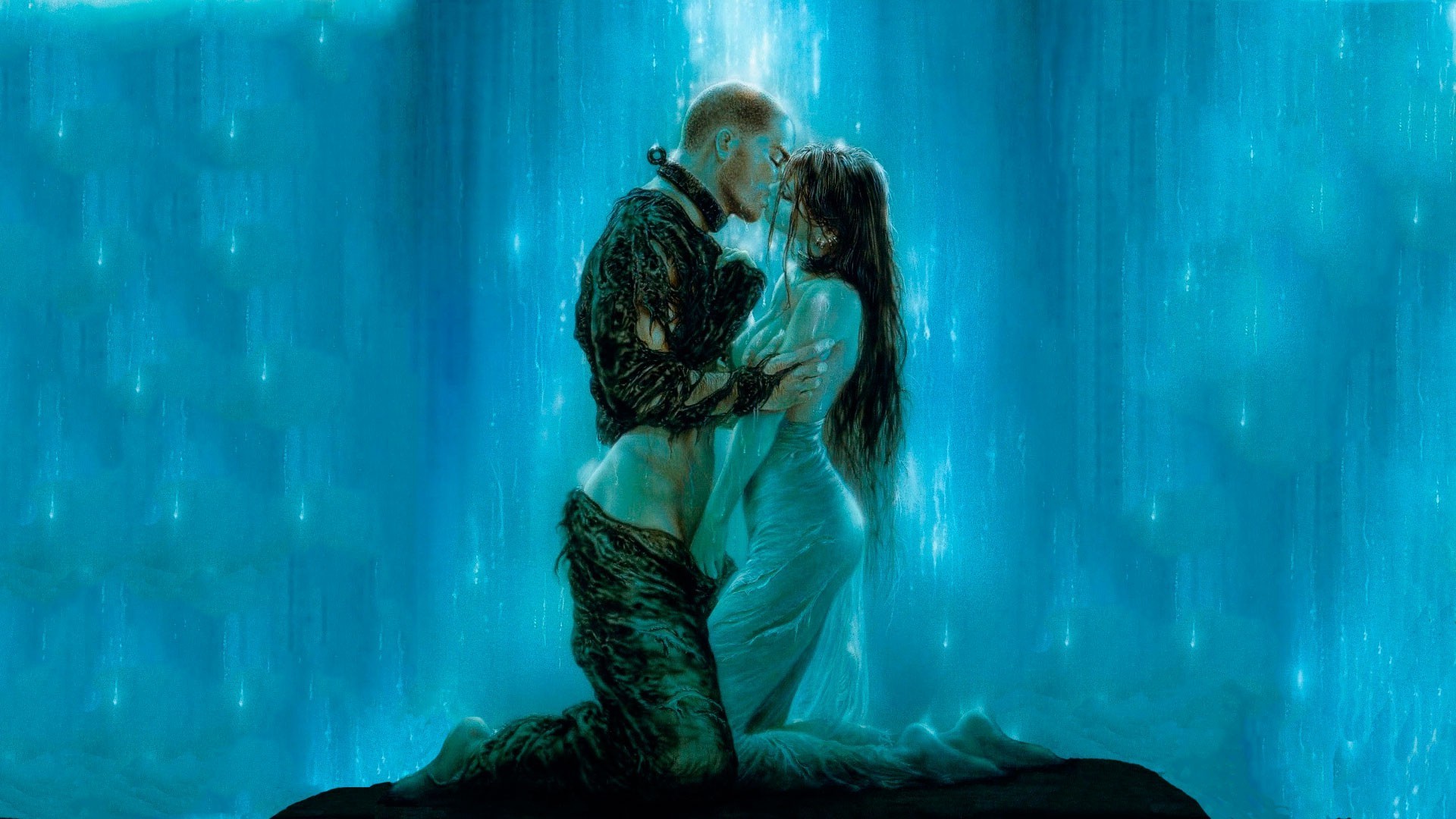 Pareja enamorada fantasía bajo el agua