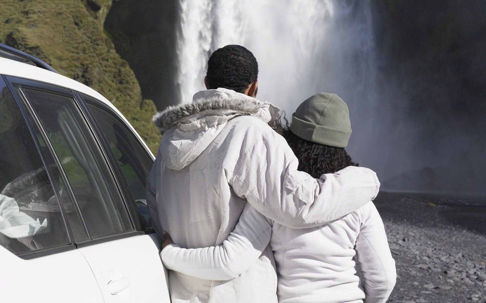 Pareja enamorada en una cascada