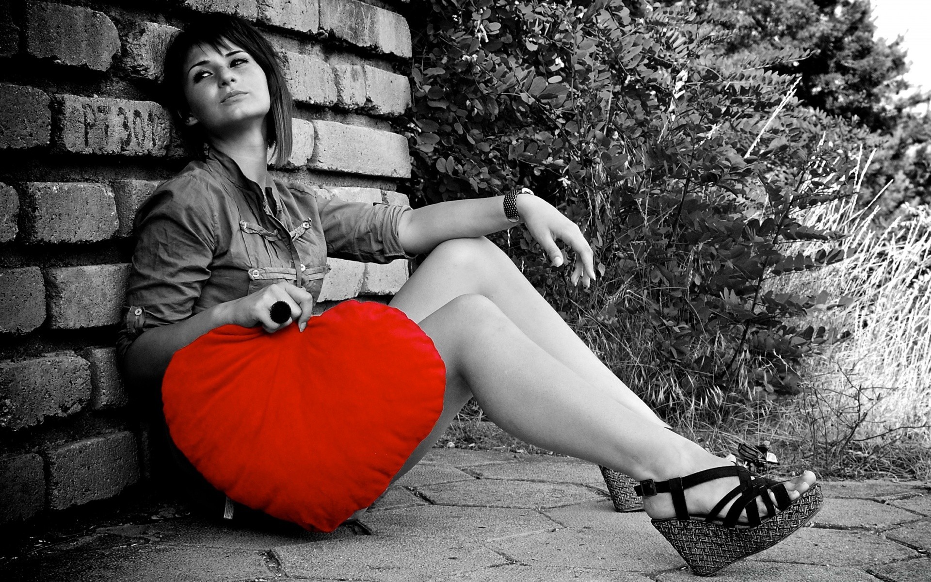 Chica con corazón sentado en el Suelo