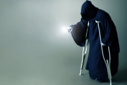 Figura retrato de un anciano de aspecto asiático en un traje tradicional sobre un fondo grisFigura retrato de un anciano de aspecto asiático en un traje tradicional sobre un fondo gris