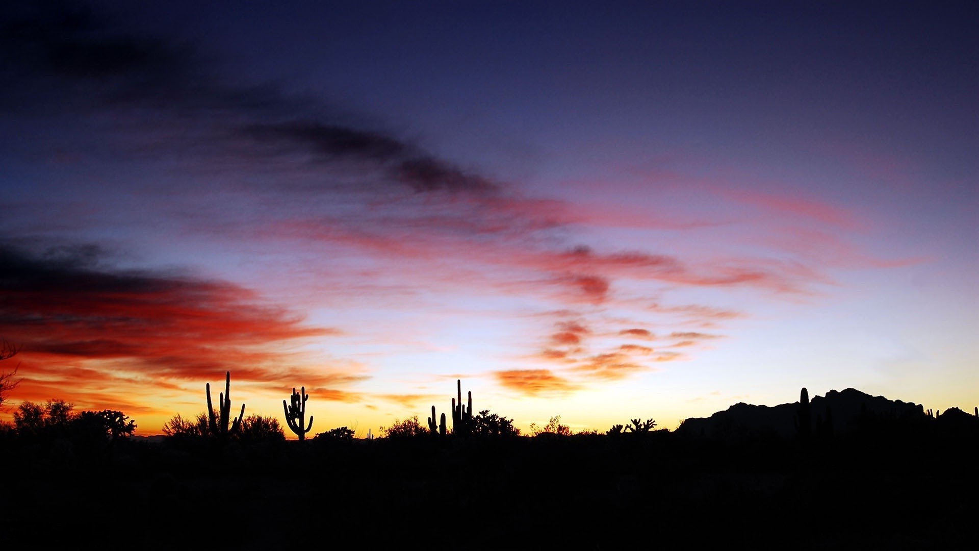 Silueta en el cielo. Anochecer y amanecer