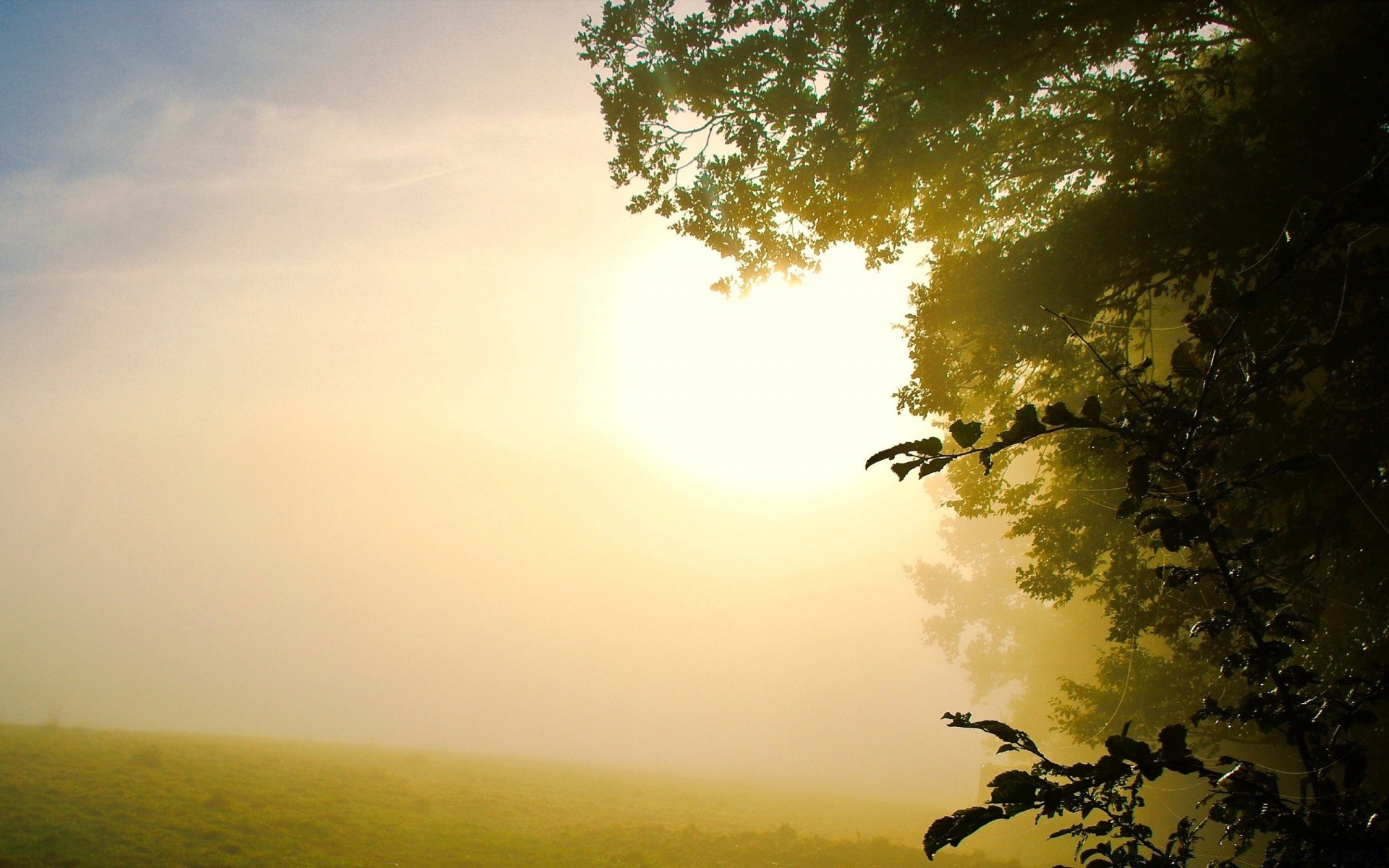 Amanecer sobre un lago de montaña y una pequeña ciudad