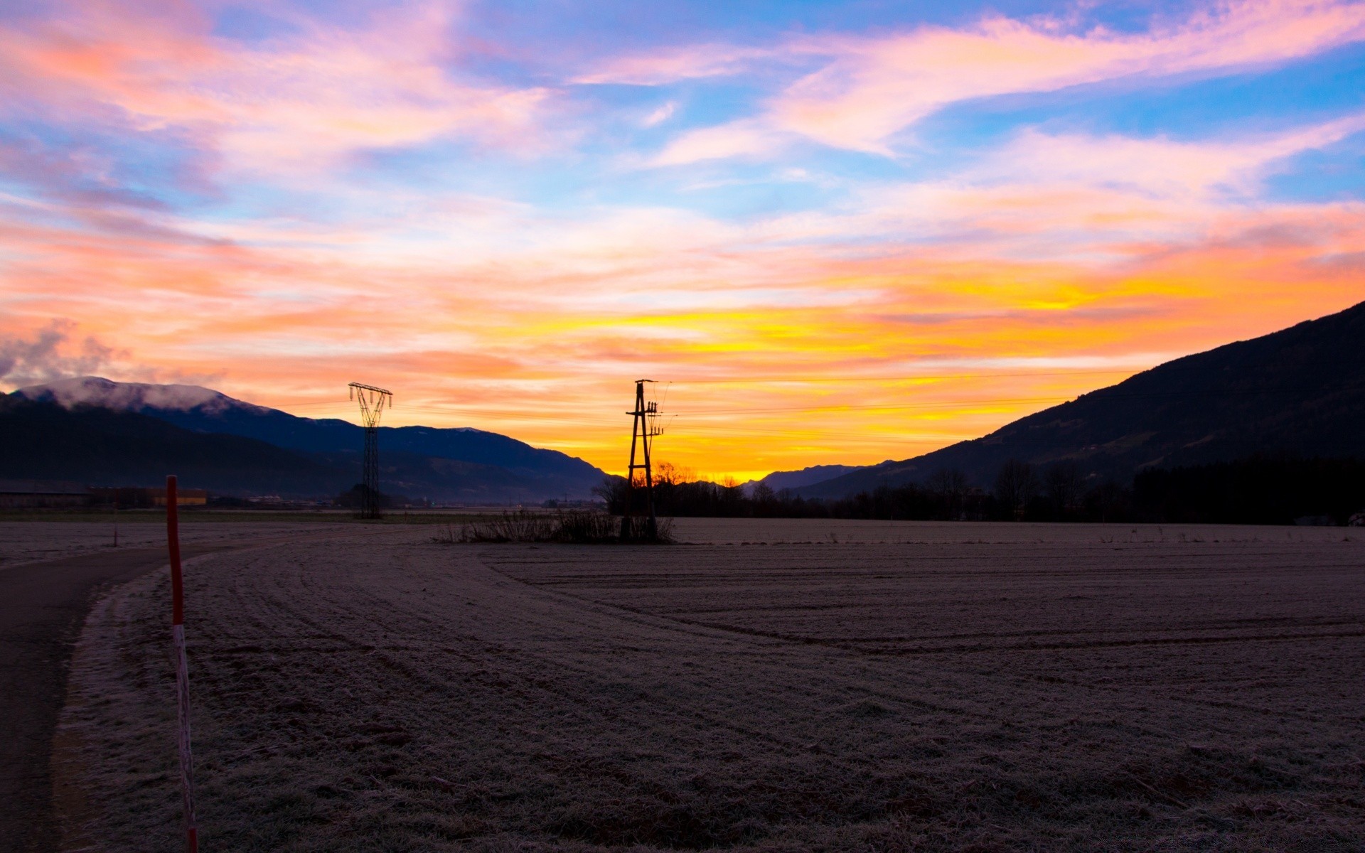Hermoso cielo, paisaje con puesta de sol