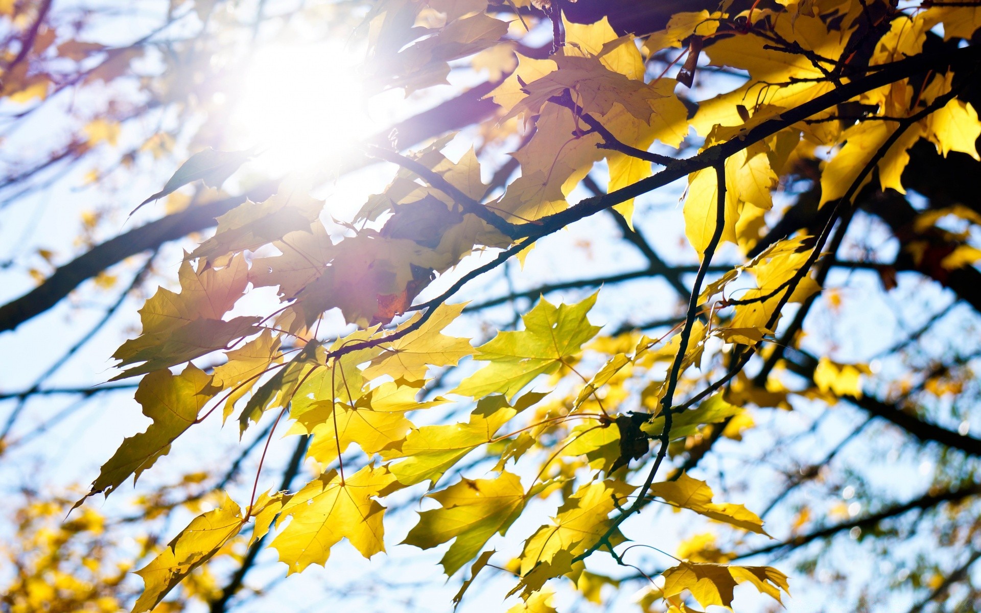Los rayos del sol se abren paso a través de las ramas de los árboles con hojas de otoñoLos rayos del sol se abren paso a través de las ramas de los árboles con hojas de otoño