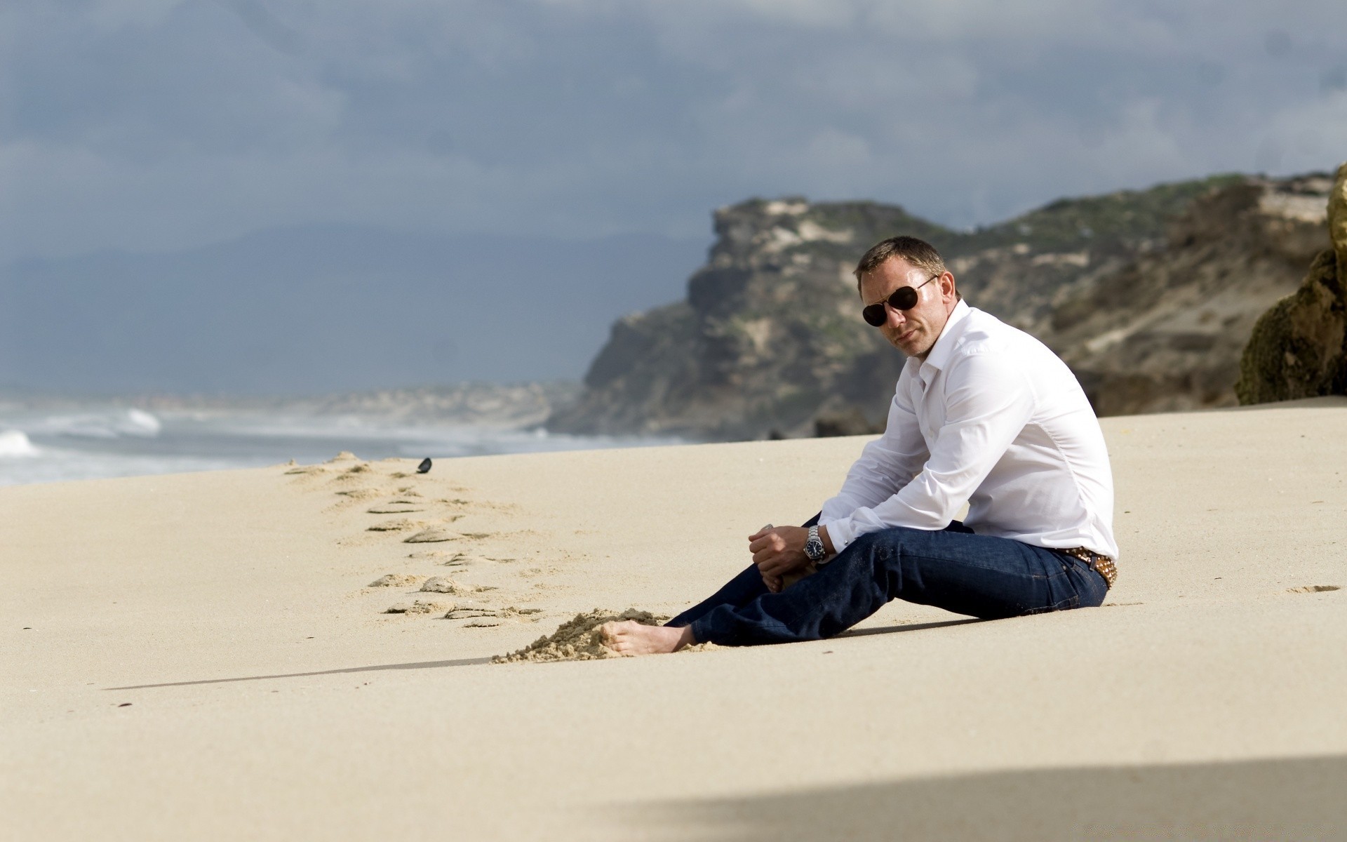 Huellas en la arena junto al mar