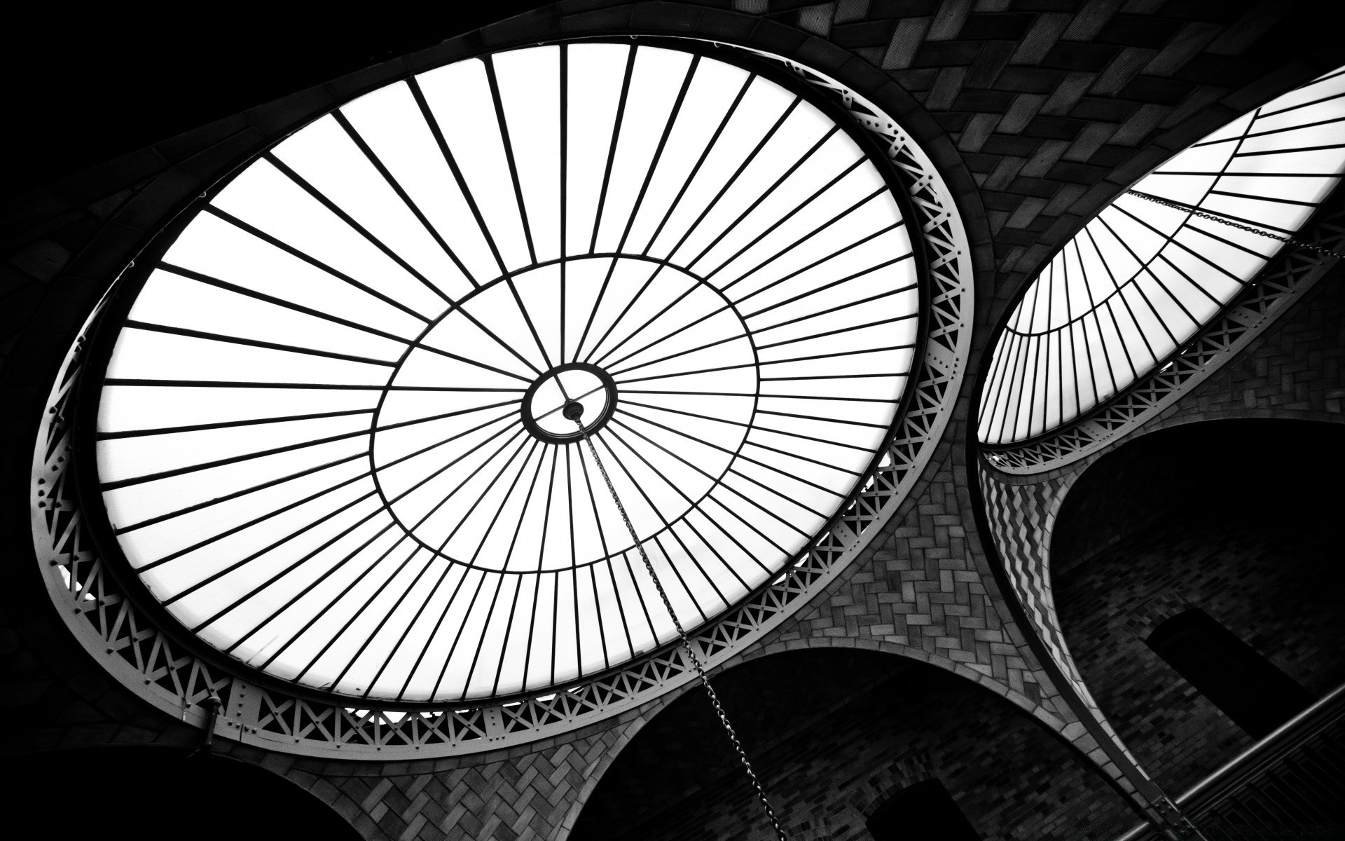 Imagen en blanco y negro de la arquitectura del techo