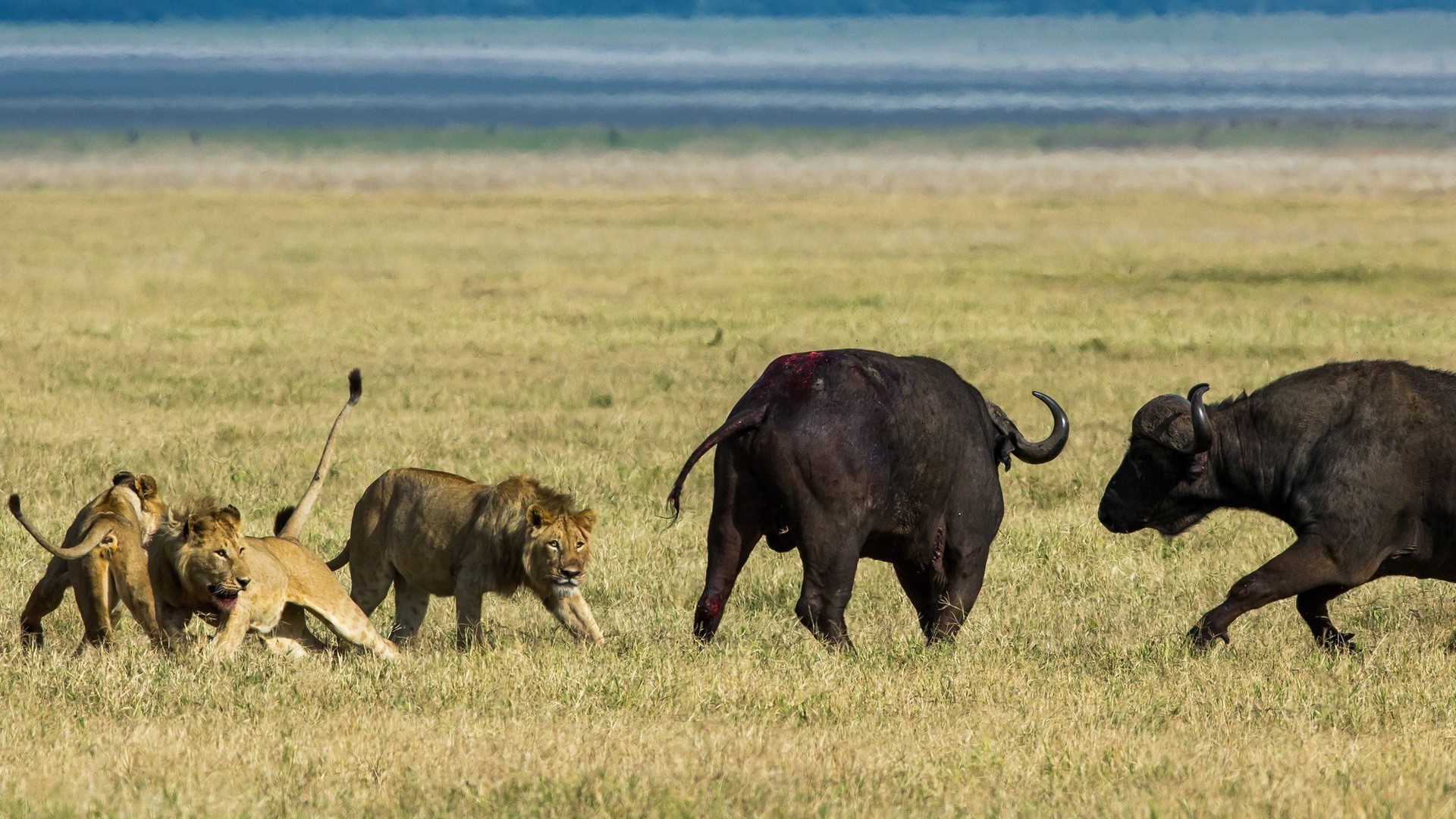 El orgullo de los leones caza búfalos