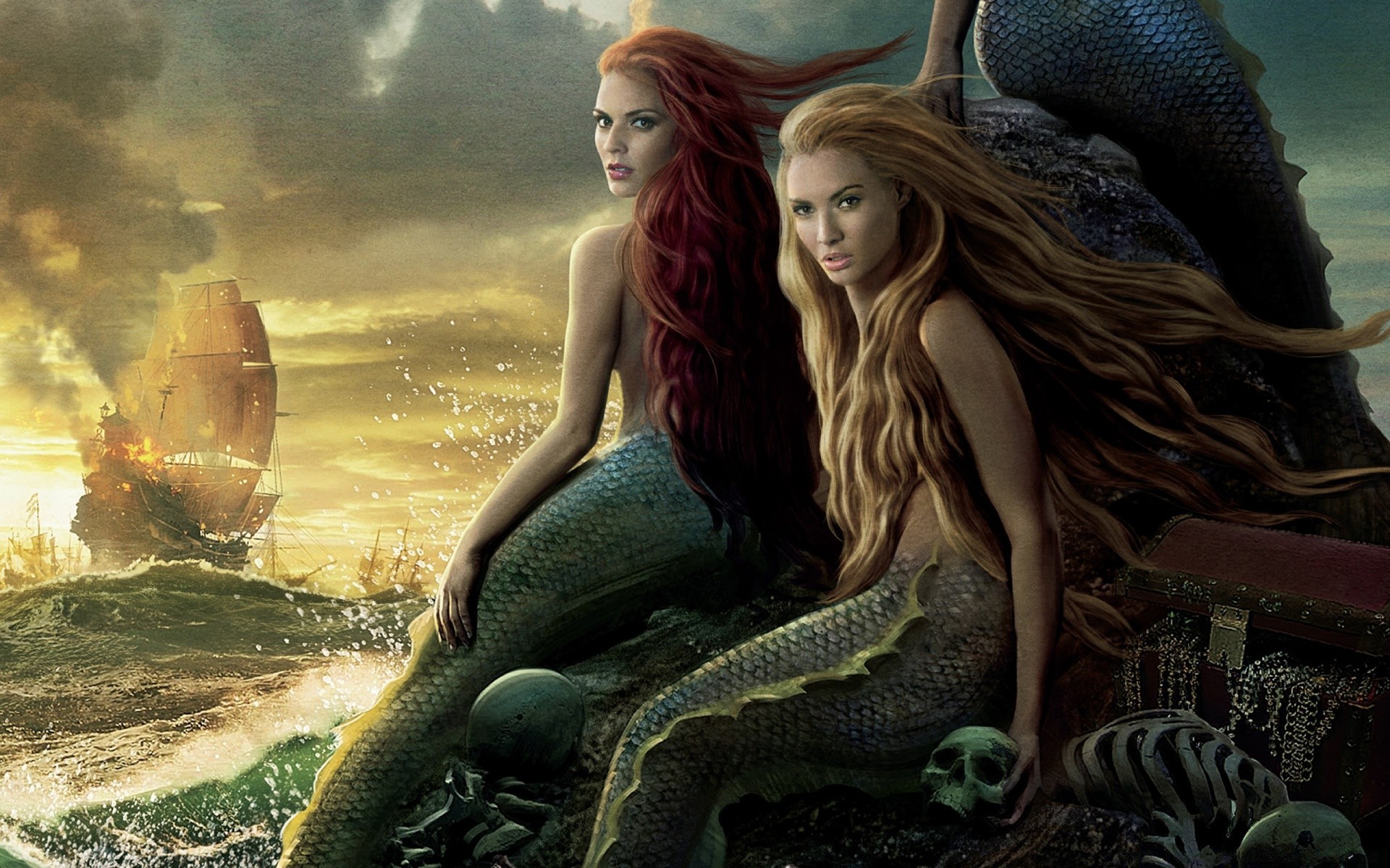 Hermosas sirenas en el mar