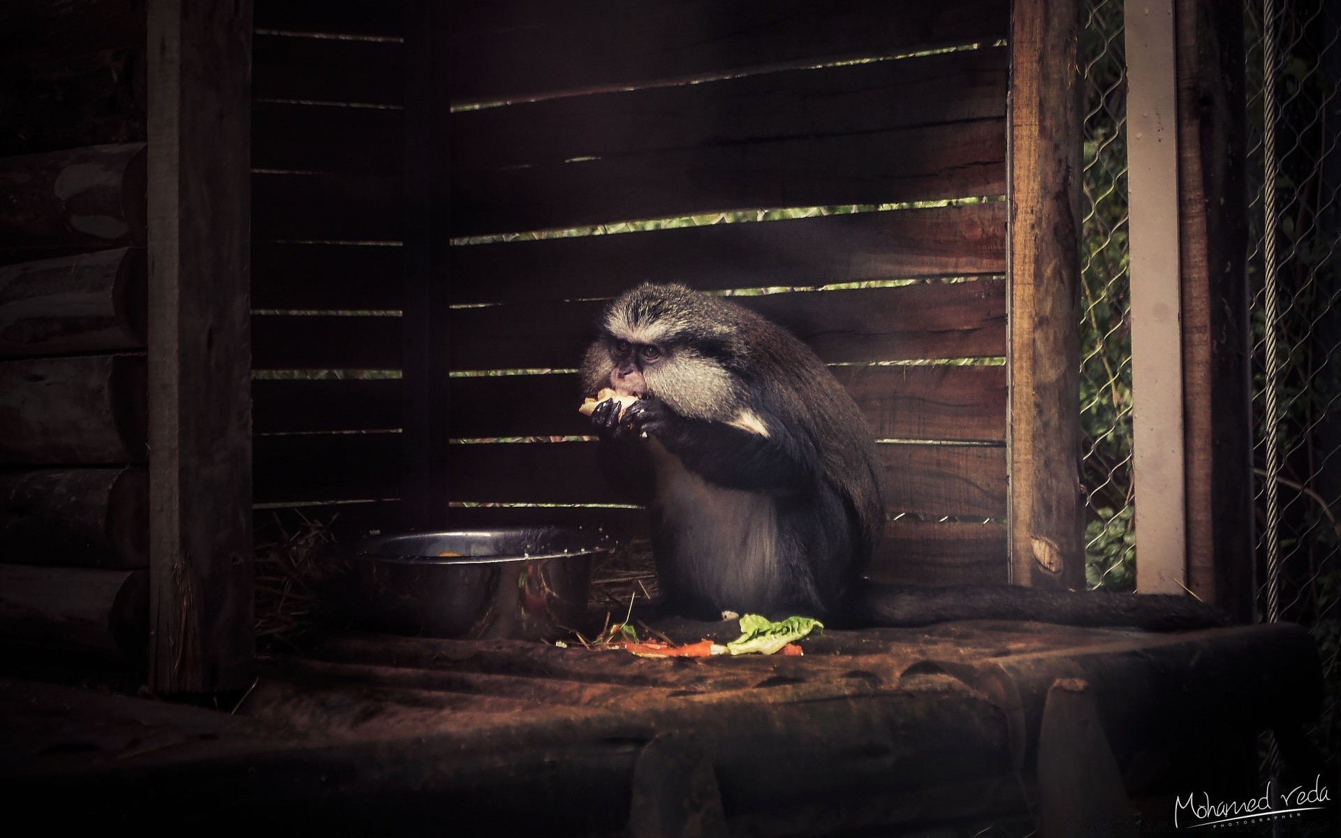 Mono se alimenta en cautiverio de un tazón