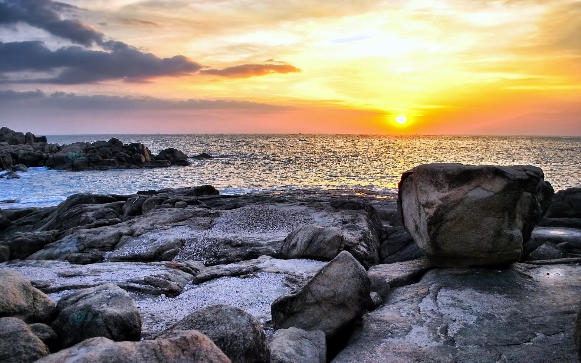 Un par de personas en una motocicleta van por el camino que sale al atardecer