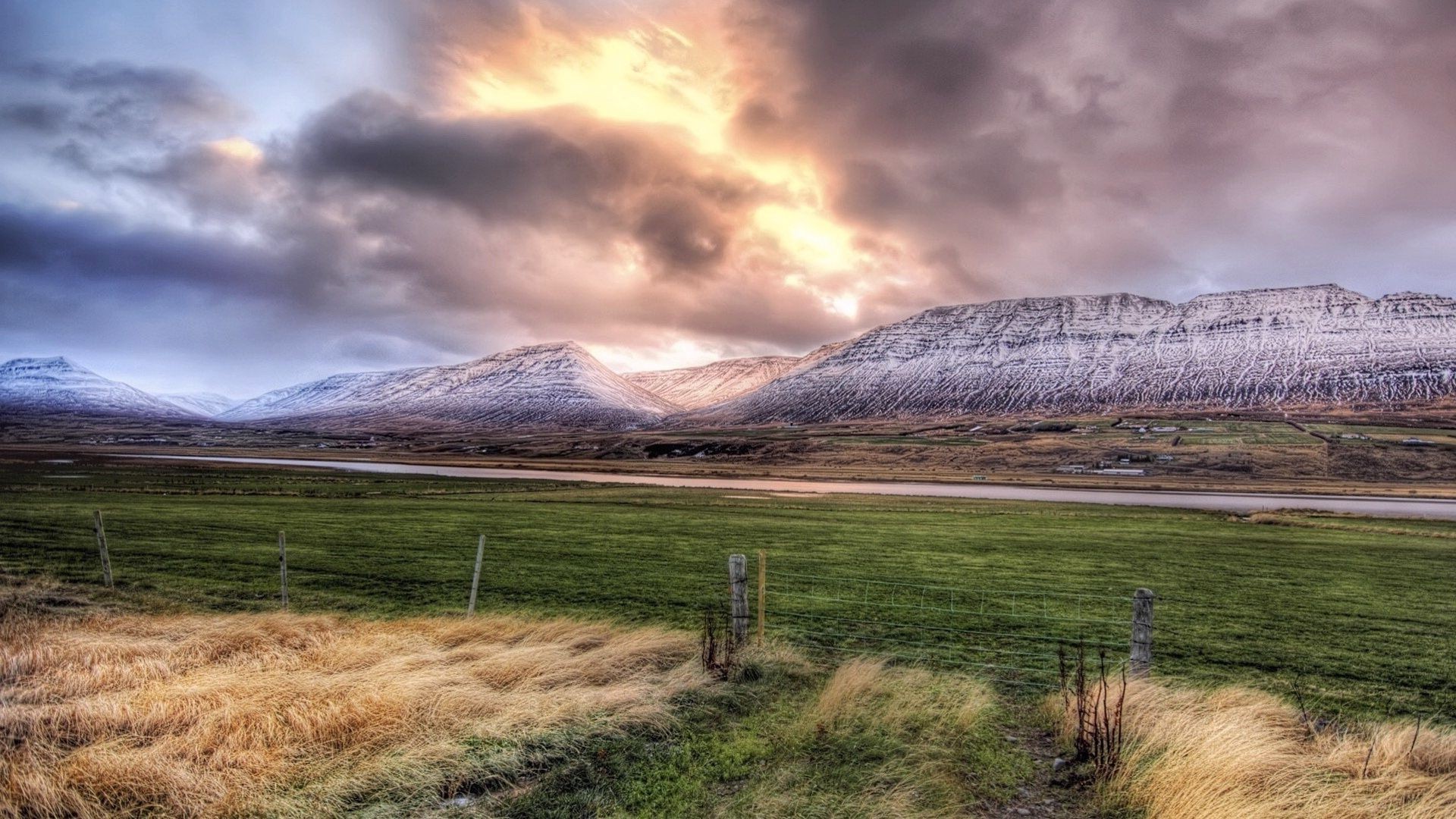 Gráficos 3D agua y rocas en el fondo del amanecer