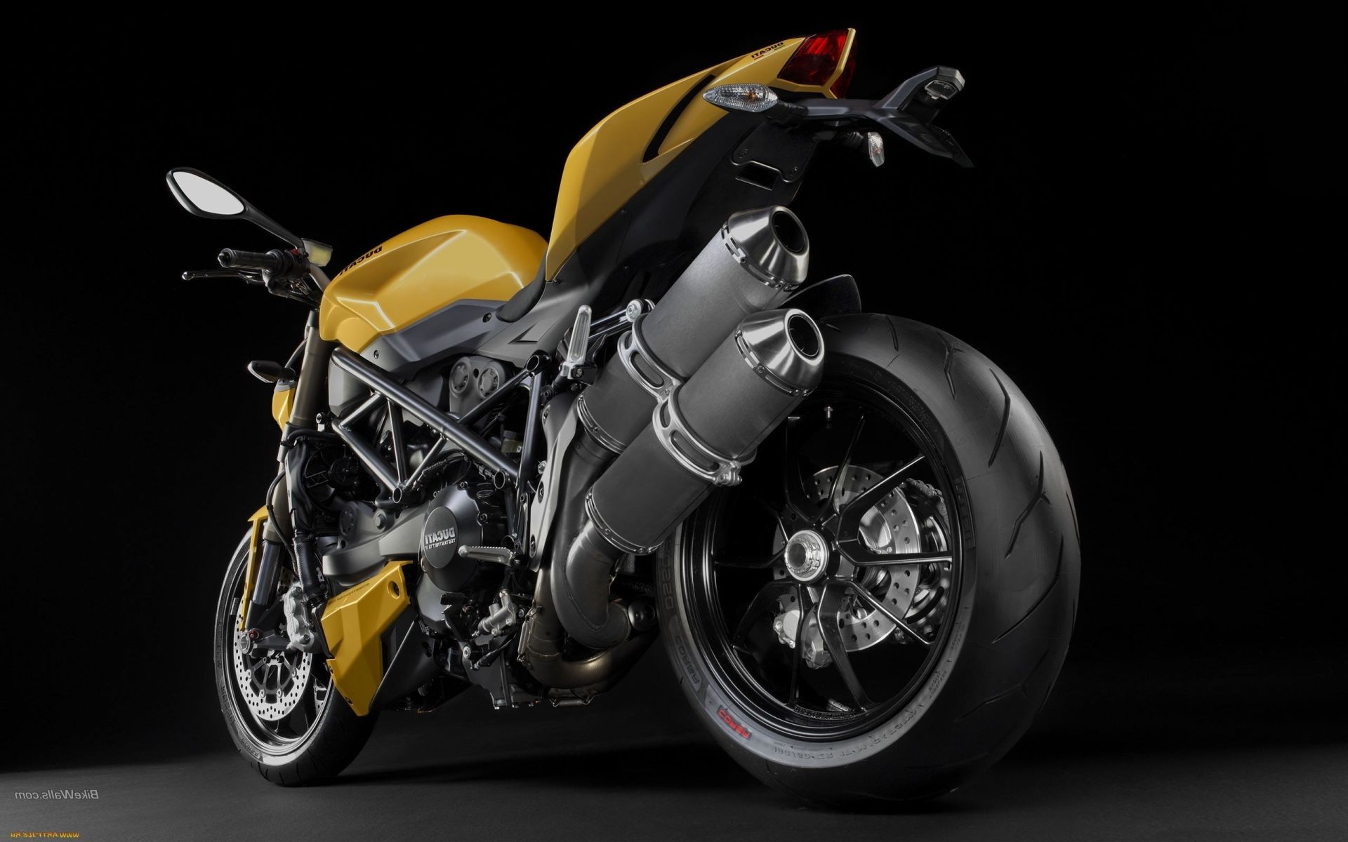 Motocicleta amarilla con ruedas negras