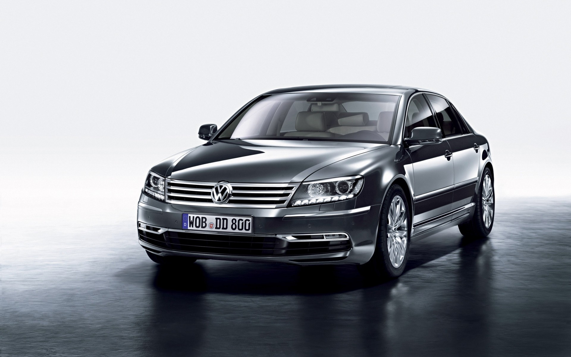 Coche negro Volkswagen sobre fondo gris